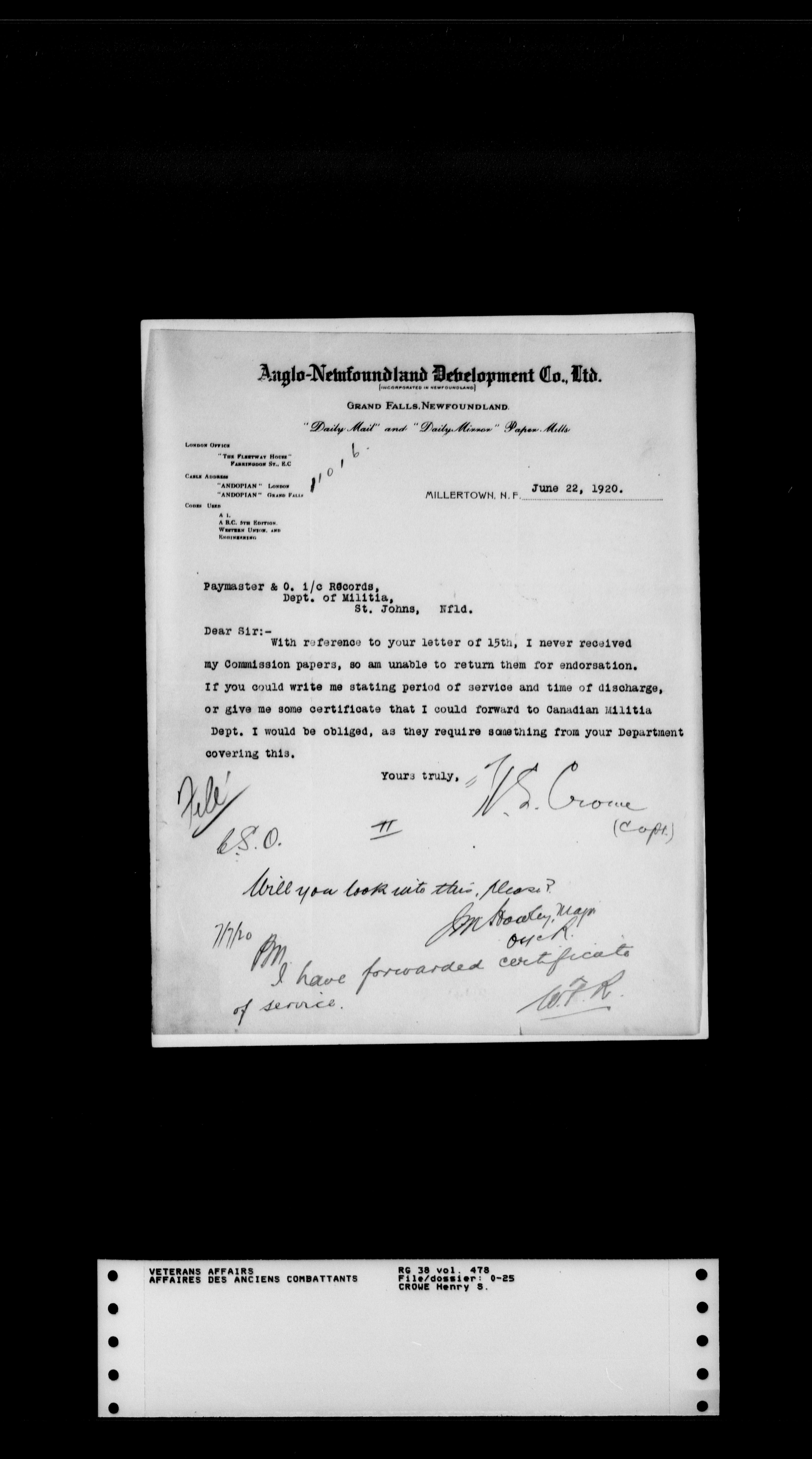 Royal Newfoundland Regiment service files : T-18002