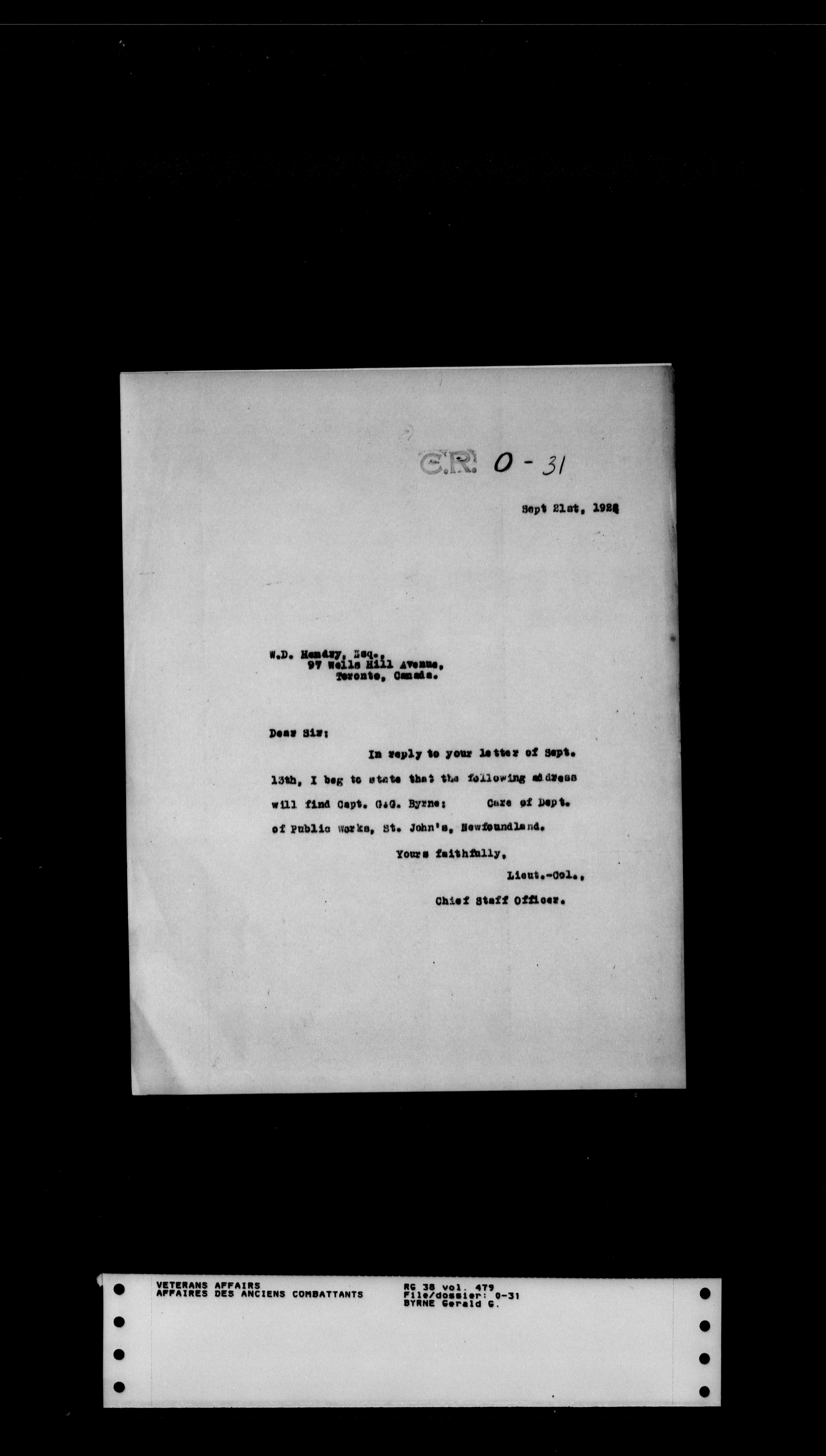 Military service files for members of the Royal Newfoundland Regiment and bandsmen and the Newfoundland Forestry Corps (1914-1919) - 18004