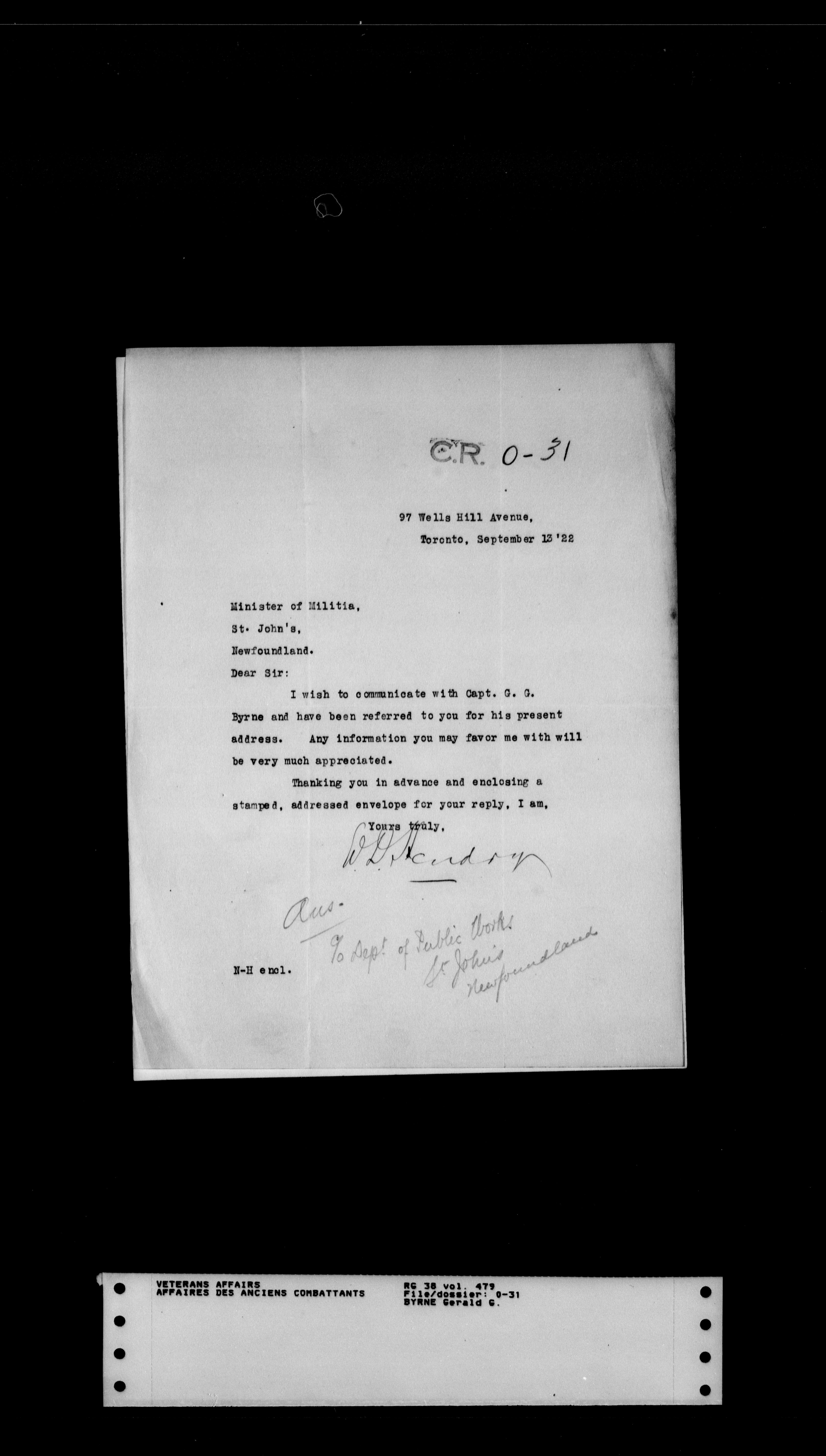Military service files for members of the Royal Newfoundland Regiment and bandsmen and the Newfoundland Forestry Corps (1914-1919) - 18004
