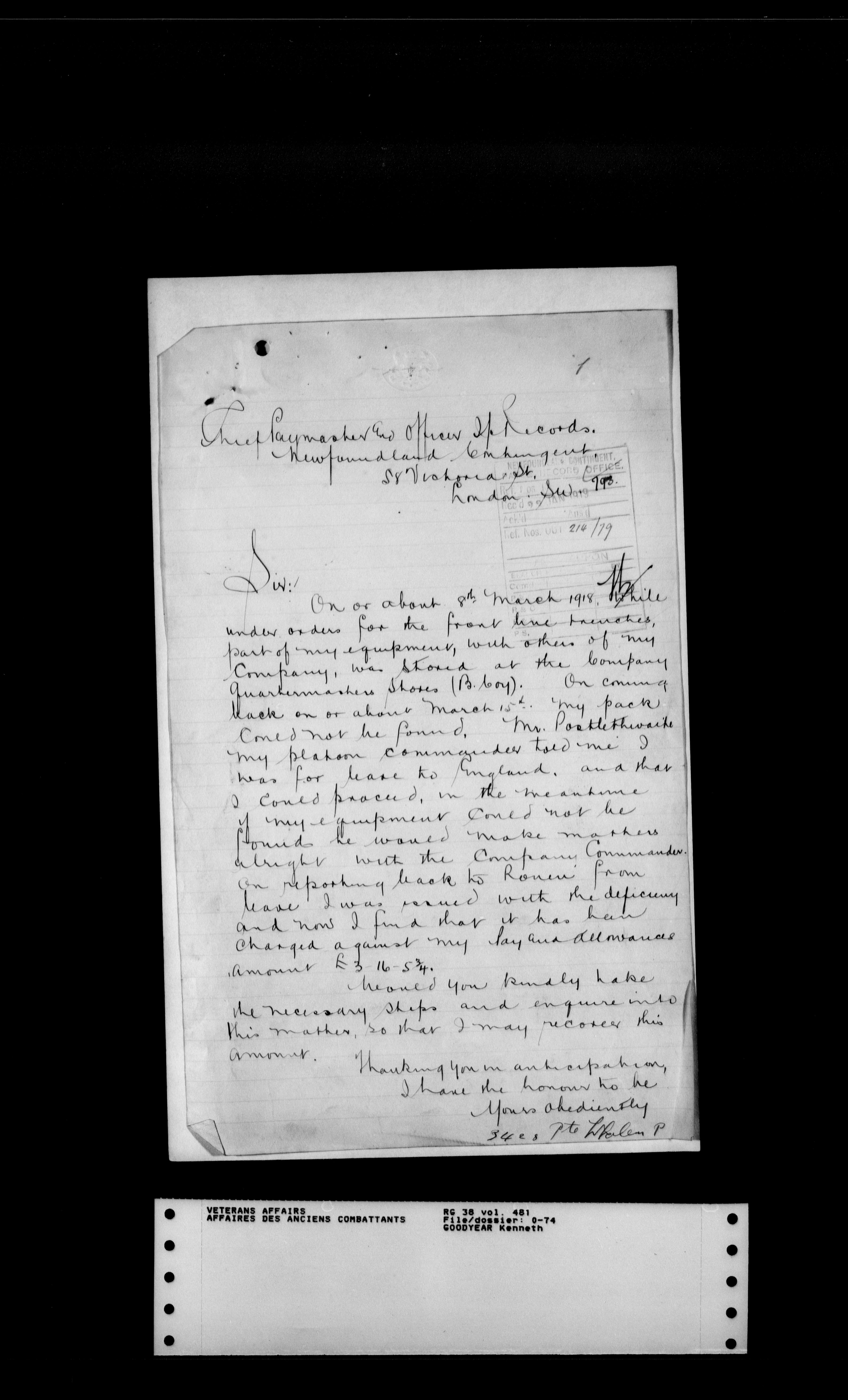 Royal Newfoundland Regiment service files : T-18006