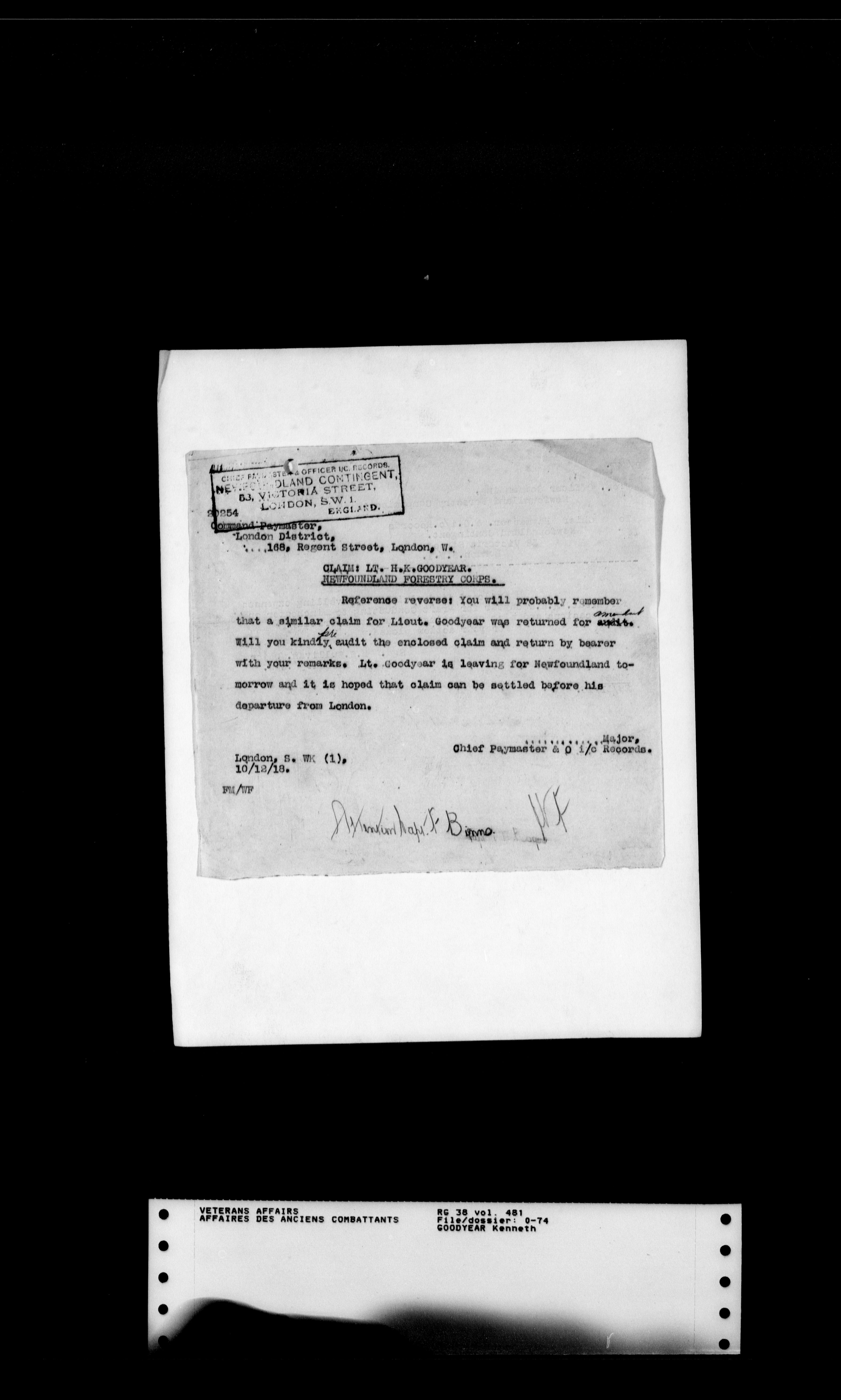 Military service files for members of the Royal Newfoundland Regiment and bandsmen and the Newfoundland Forestry Corps (1914-1919) - 18006