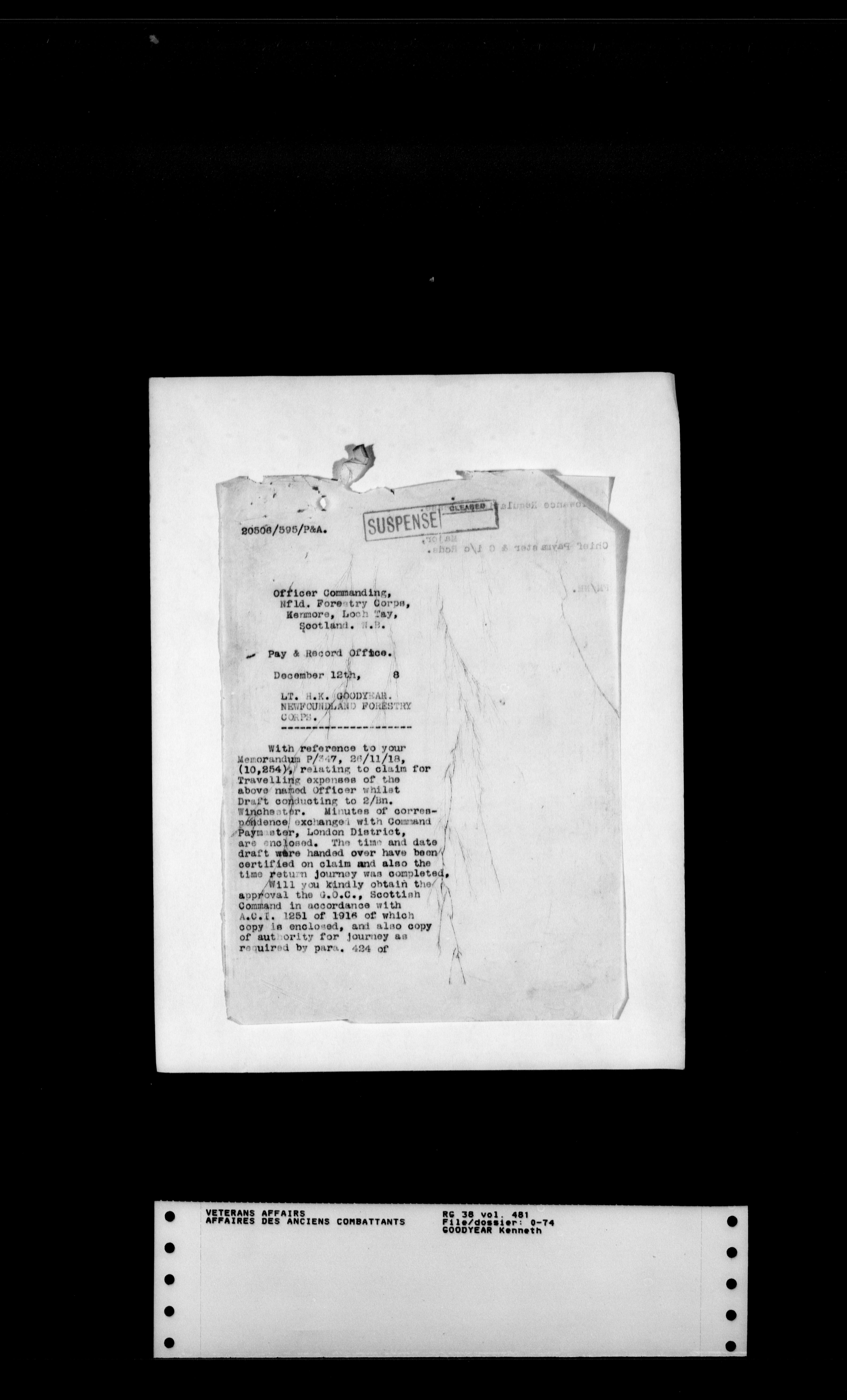 Military service files for members of the Royal Newfoundland Regiment and bandsmen and the Newfoundland Forestry Corps (1914-1919) - 18006