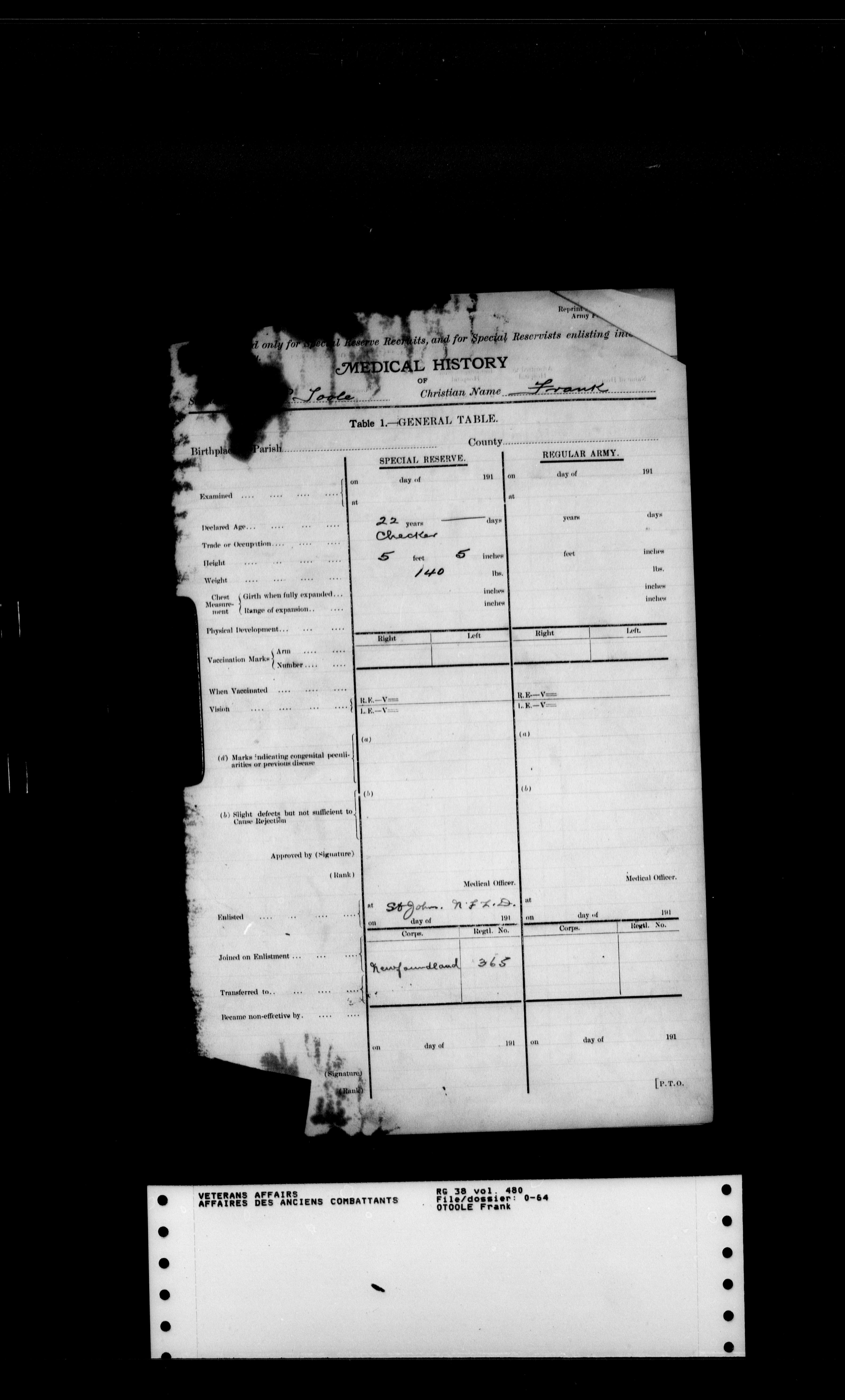 Military service files for members of the Royal Newfoundland Regiment and bandsmen and the Newfoundland Forestry Corps (1914-1919) - 18006