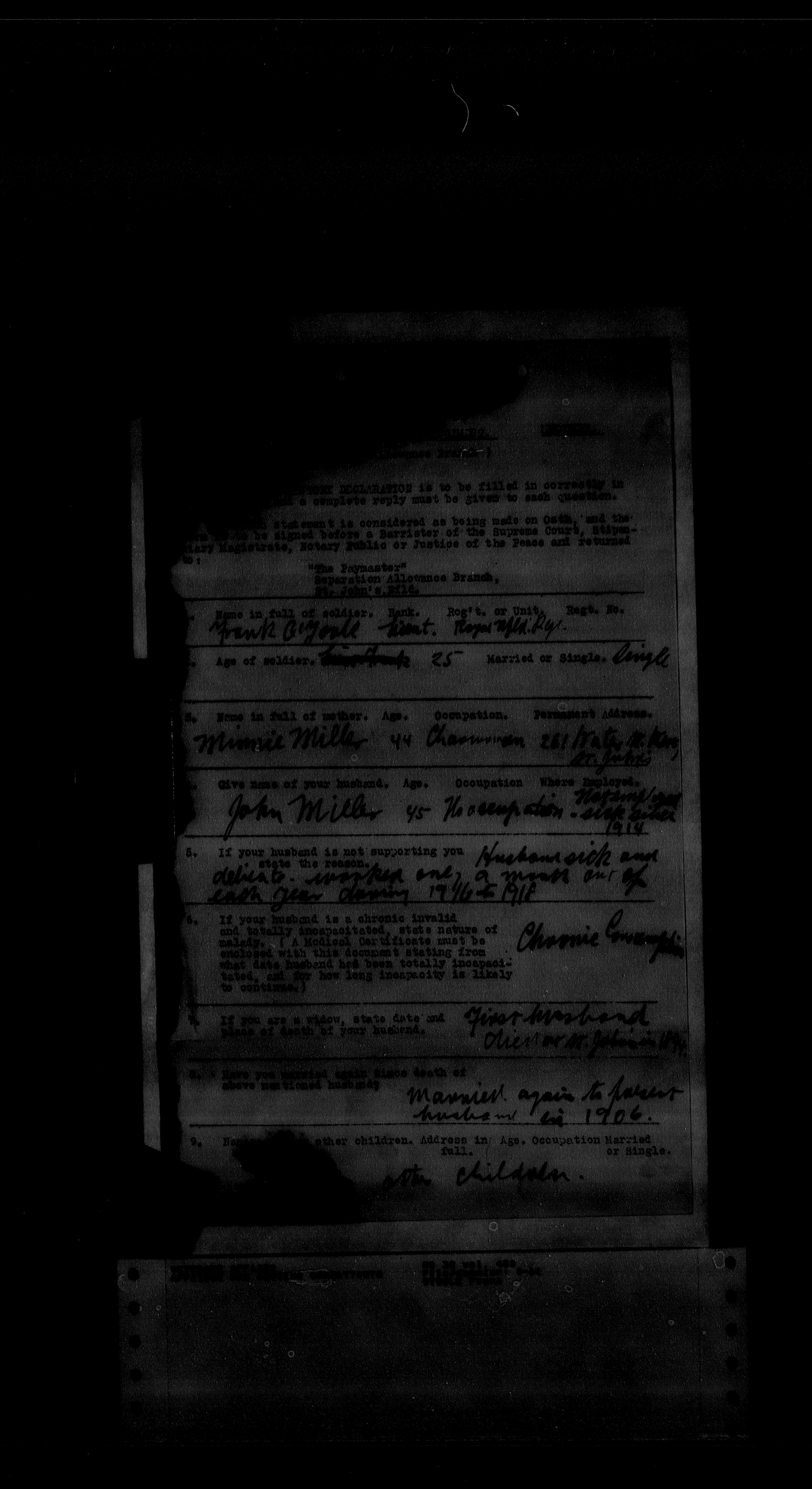 Military service files for members of the Royal Newfoundland Regiment and bandsmen and the Newfoundland Forestry Corps (1914-1919) - 18006