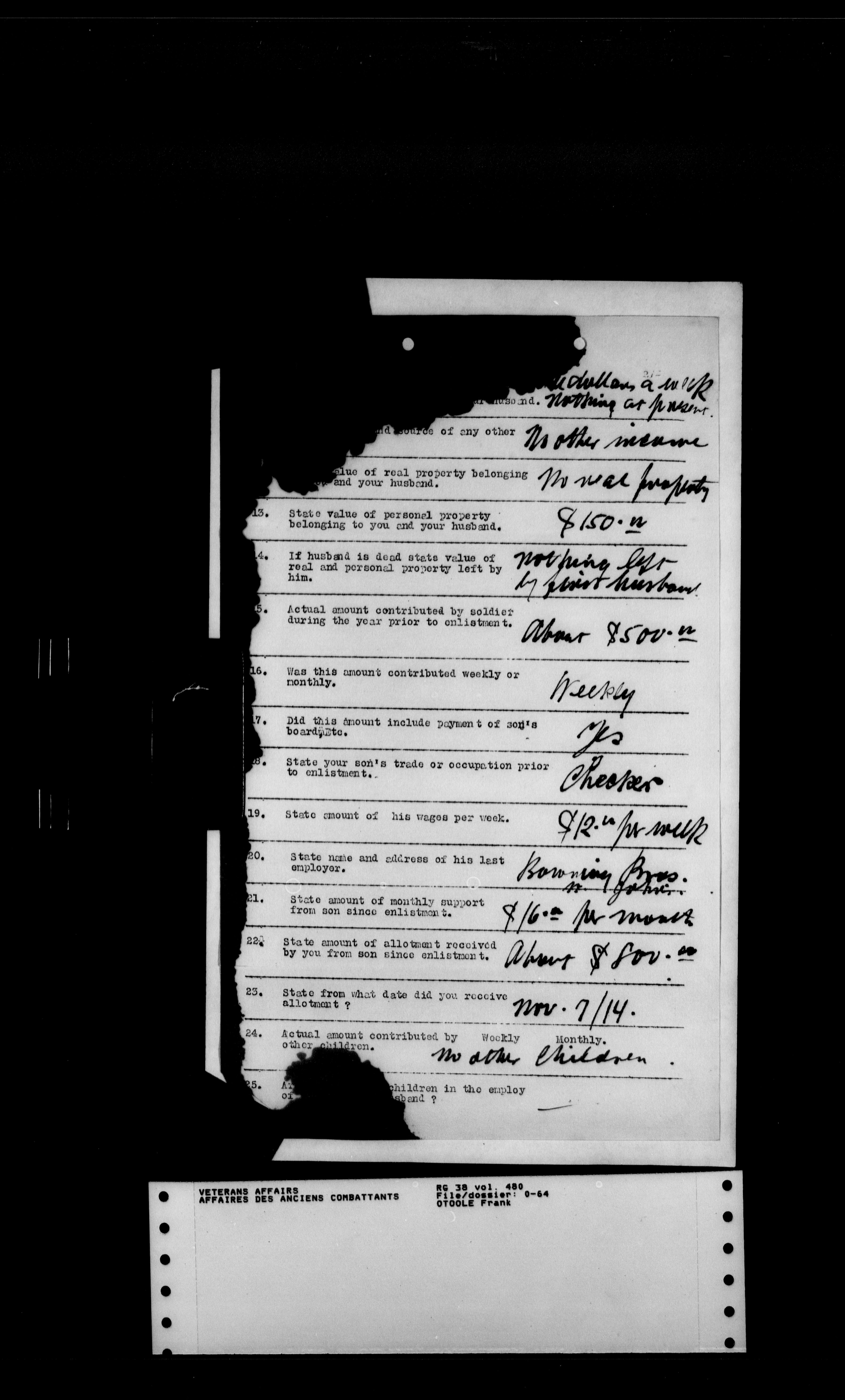 Royal Newfoundland Regiment service files : T-18006