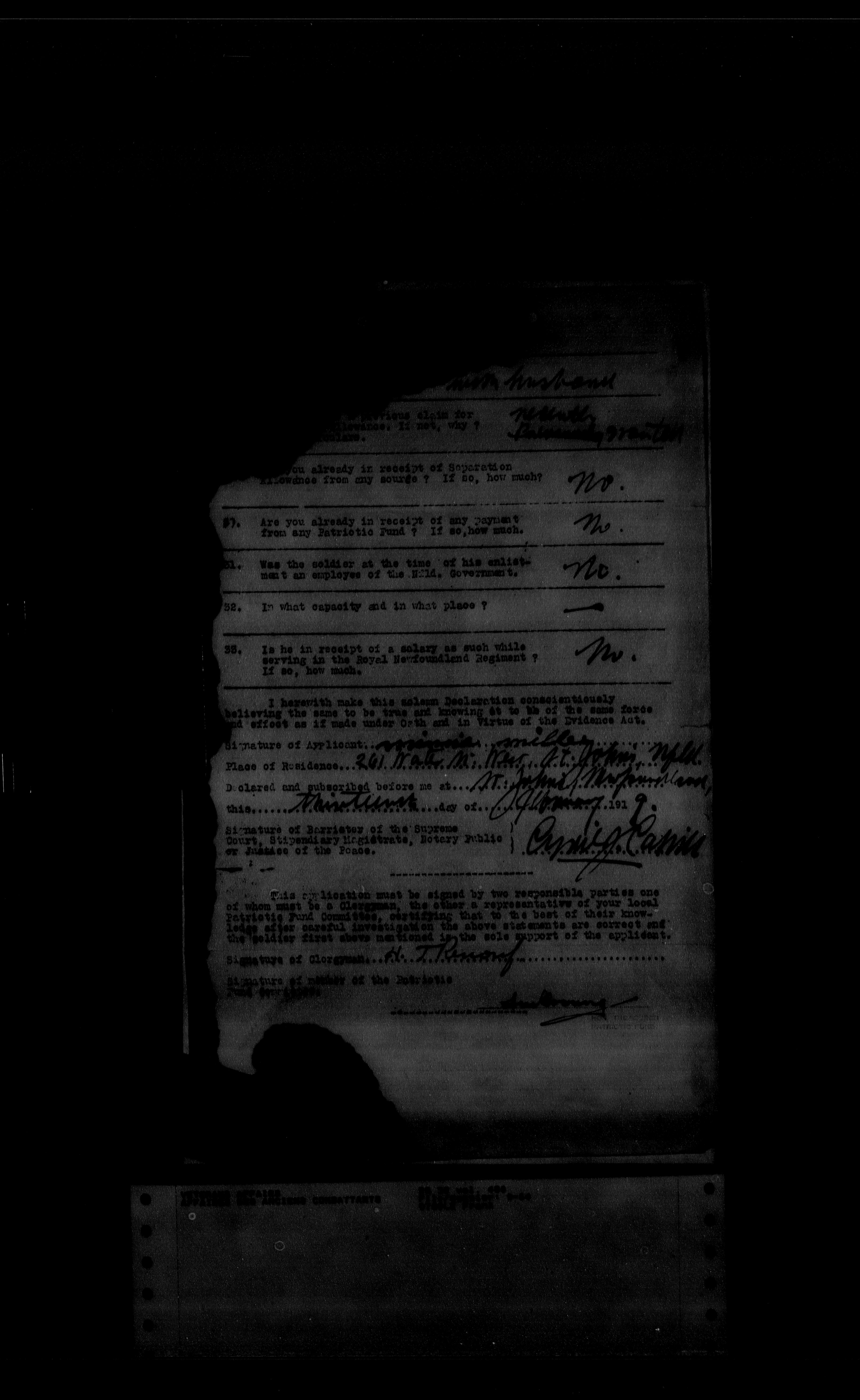 Military service files for members of the Royal Newfoundland Regiment and bandsmen and the Newfoundland Forestry Corps (1914-1919) - 18006