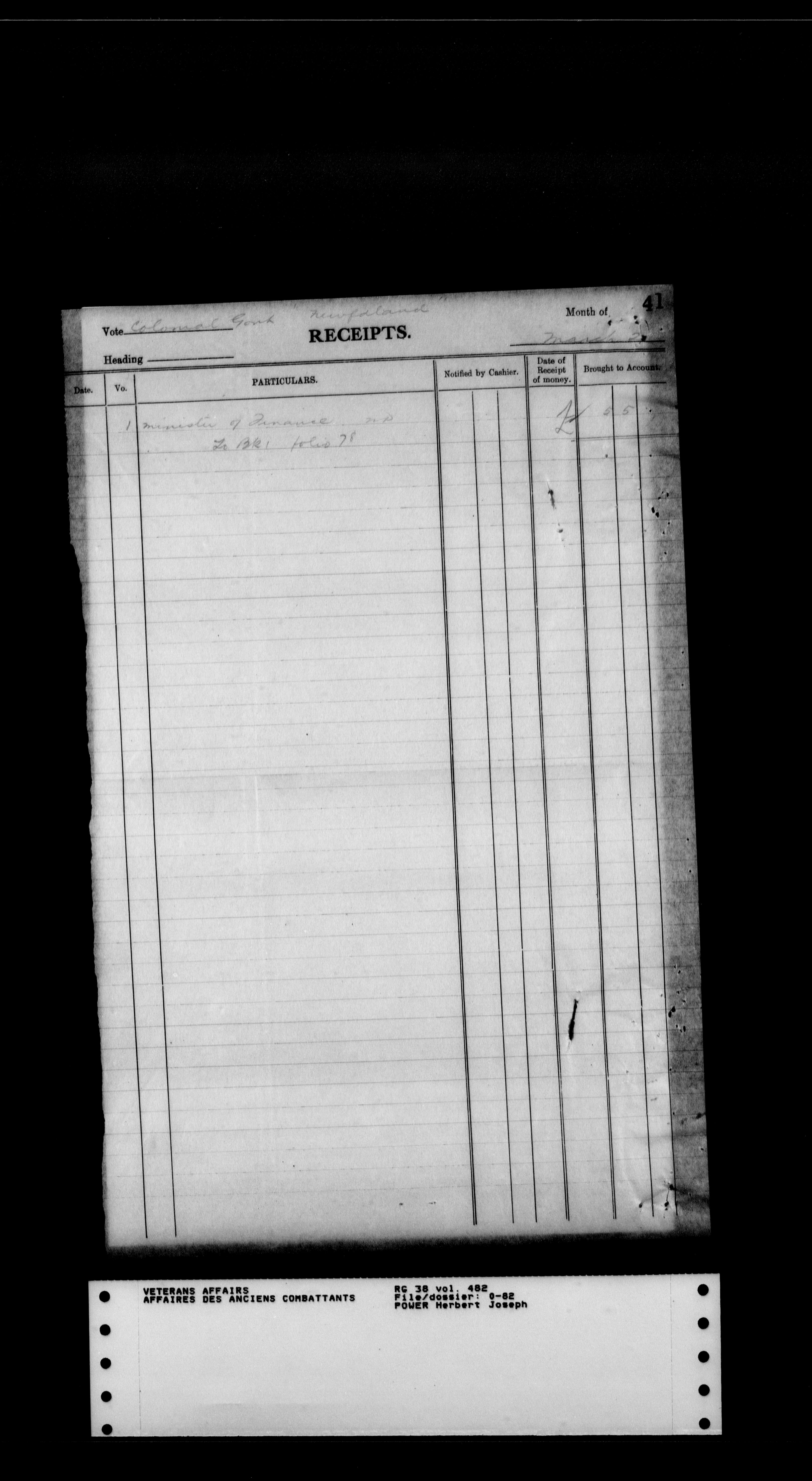 Military service files for members of the Royal Newfoundland Regiment and bandsmen and the Newfoundland Forestry Corps (1914-1919) - 18007