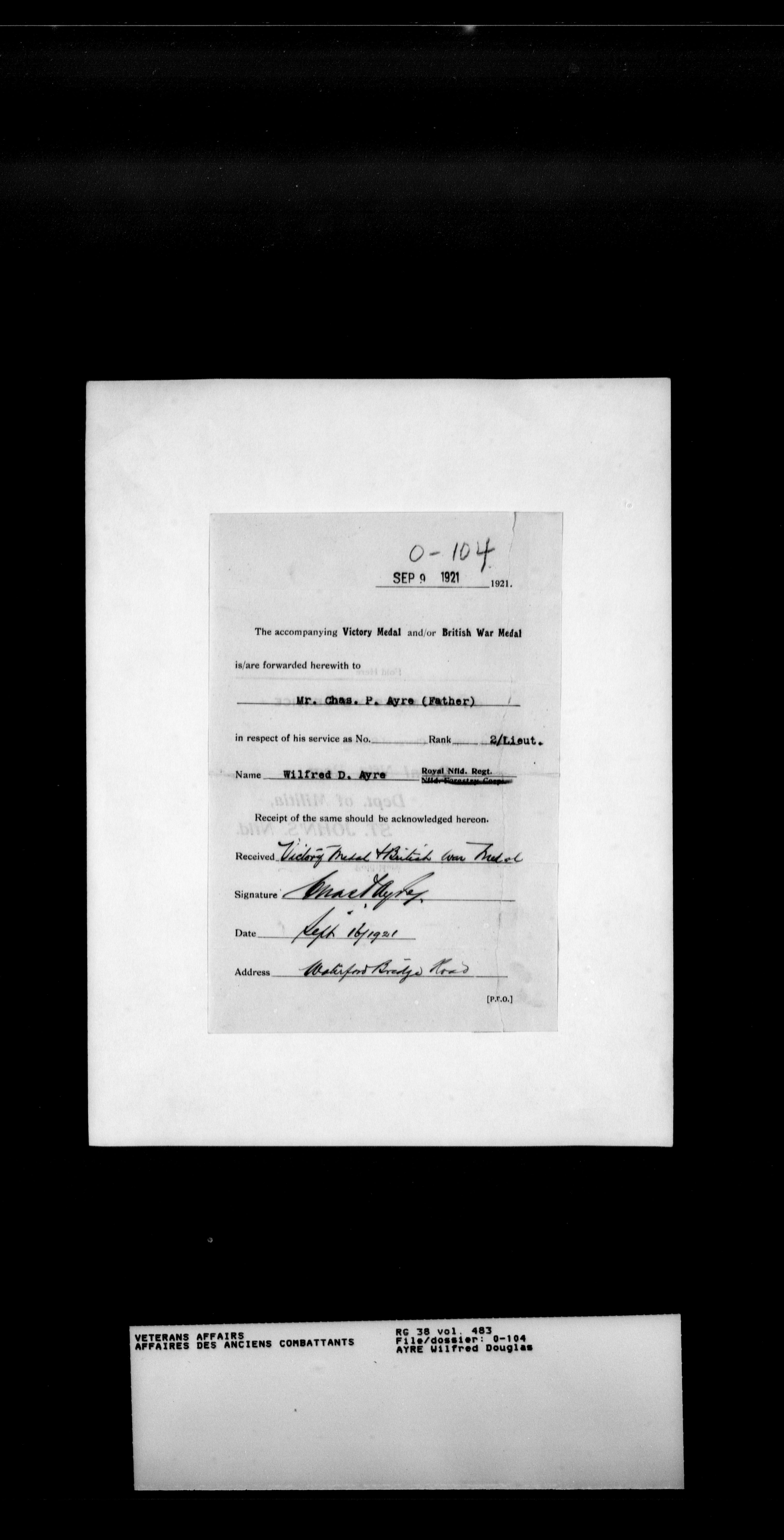 Military service files for members of the Royal Newfoundland Regiment and bandsmen and the Newfoundland Forestry Corps (1914-1919) - 18009