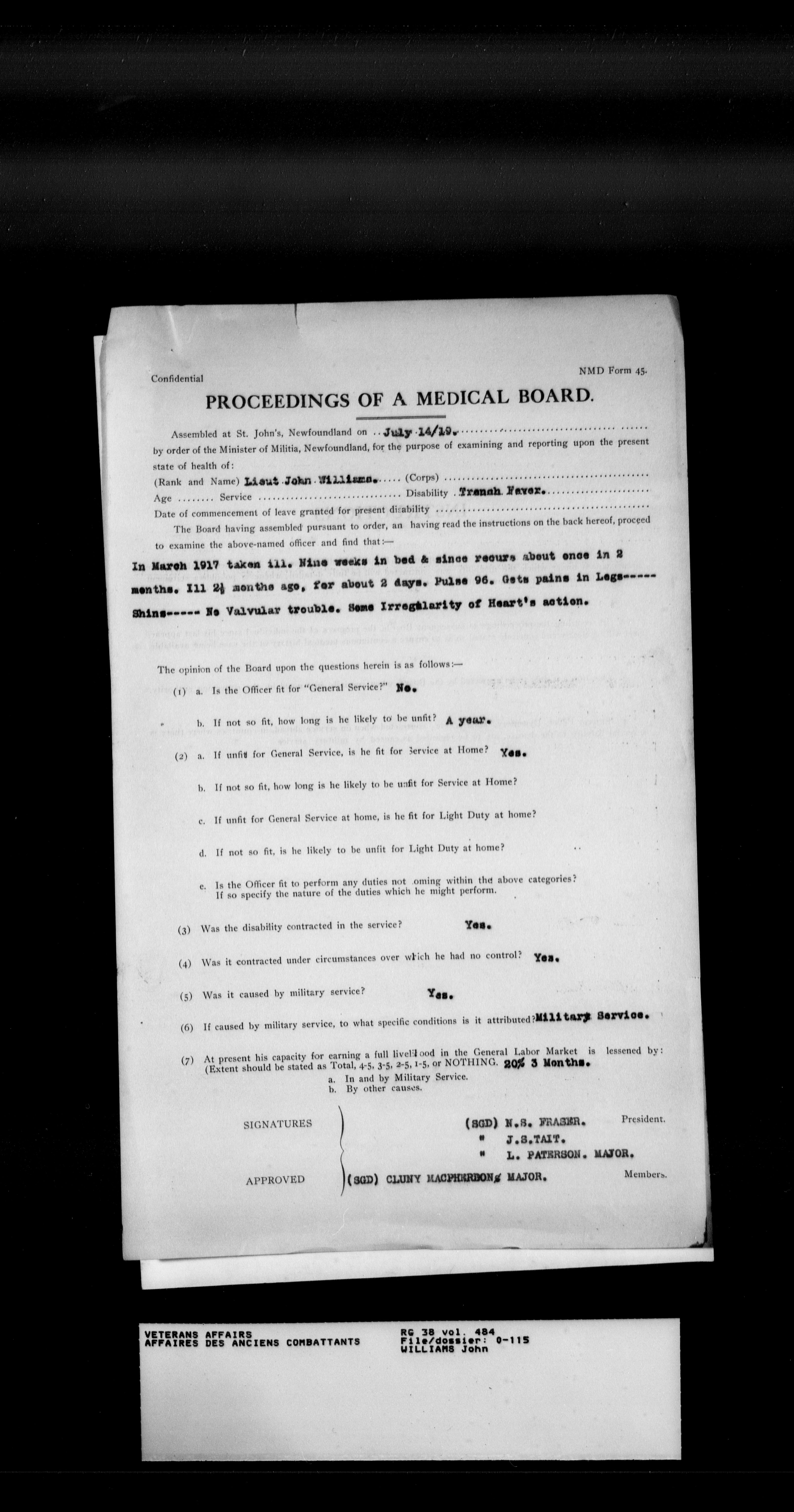 Military service files for members of the Royal Newfoundland Regiment and bandsmen and the Newfoundland Forestry Corps (1914-1919) - 18010