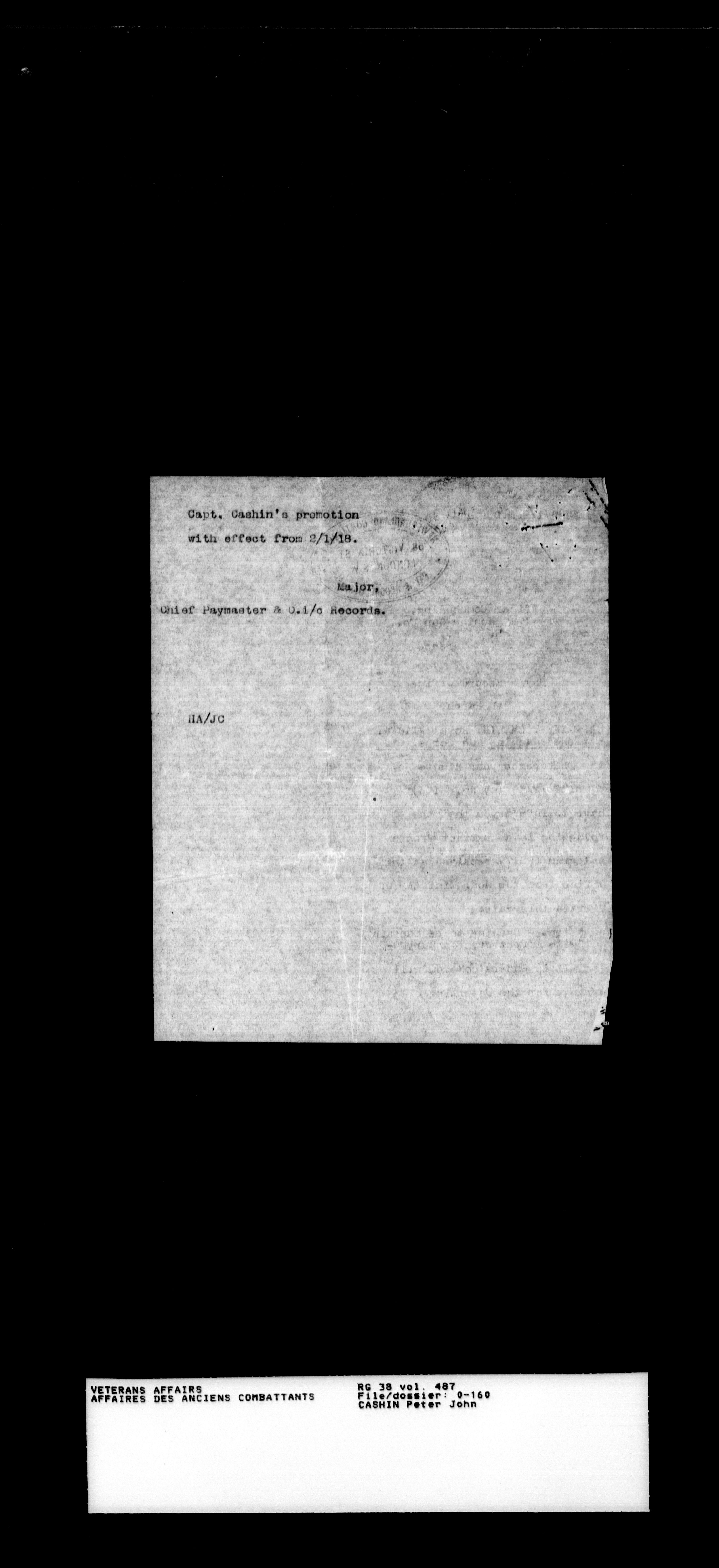 Military service files for members of the Royal Newfoundland Regiment and bandsmen and the Newfoundland Forestry Corps (1914-1919) - 18015