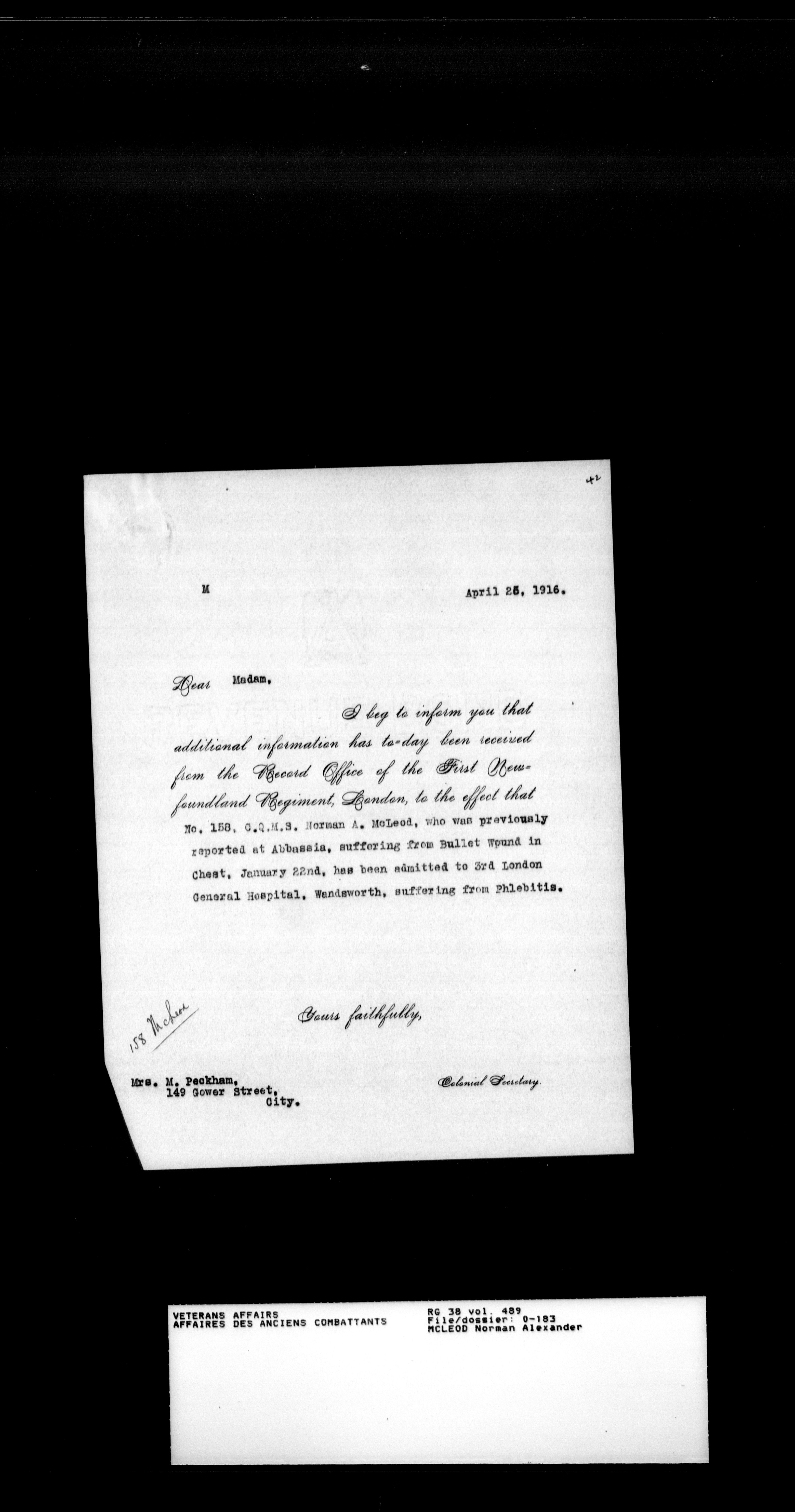 Military service files for members of the Royal Newfoundland Regiment and bandsmen and the Newfoundland Forestry Corps (1914-1919) - 18016