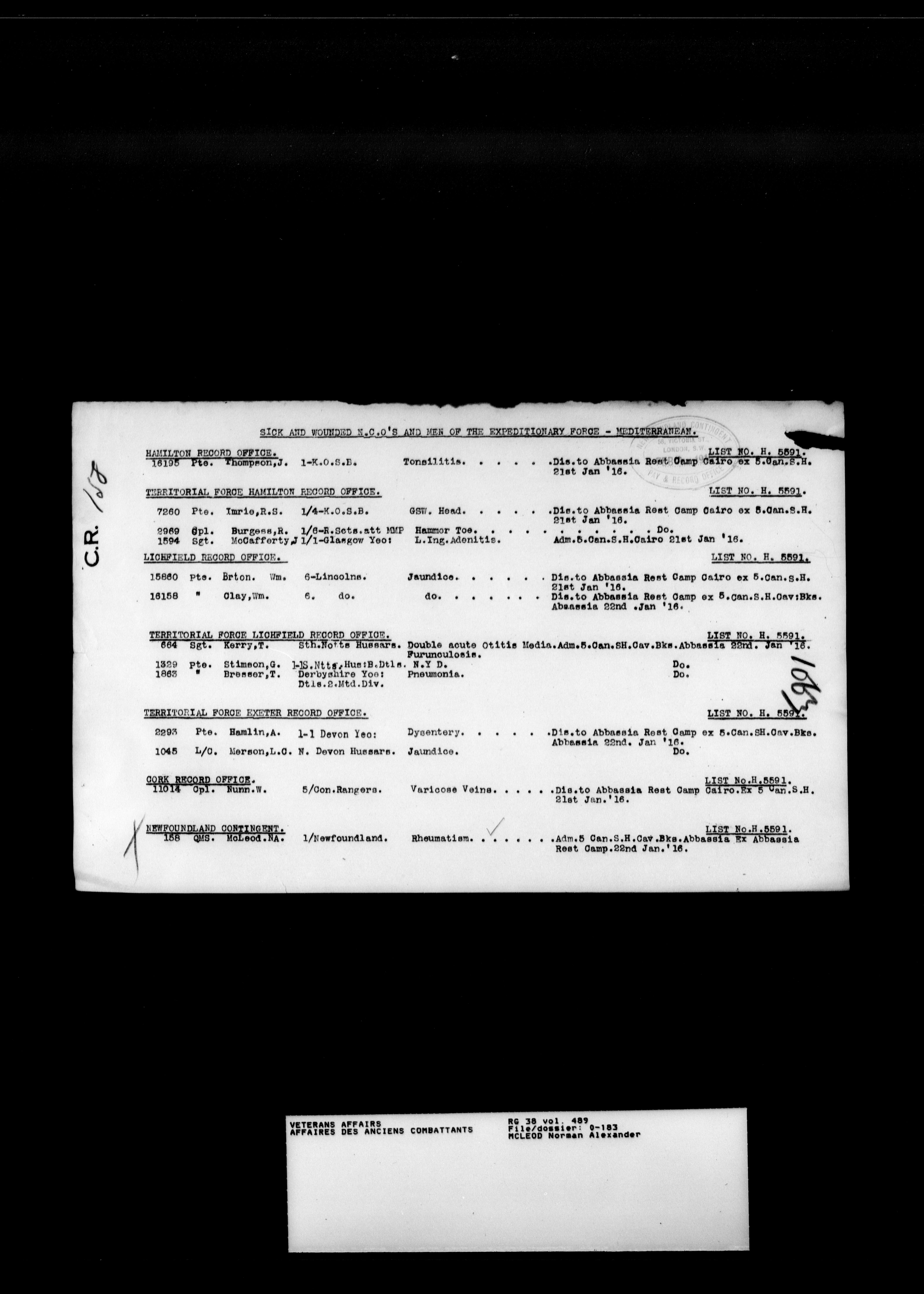 Military service files for members of the Royal Newfoundland Regiment and bandsmen and the Newfoundland Forestry Corps (1914-1919) - 18016