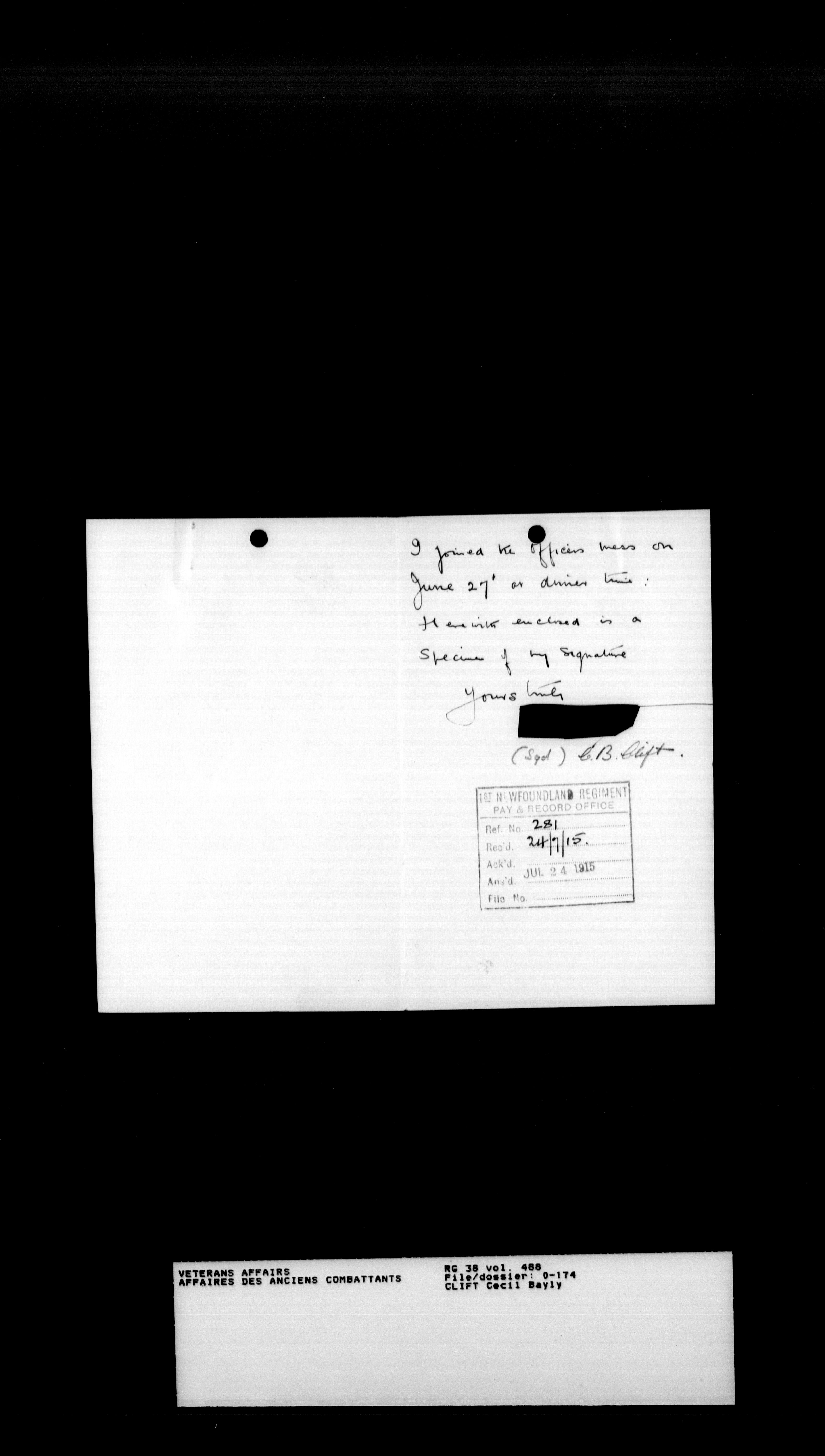 Military service files for members of the Royal Newfoundland Regiment and bandsmen and the Newfoundland Forestry Corps (1914-1919) - 18016