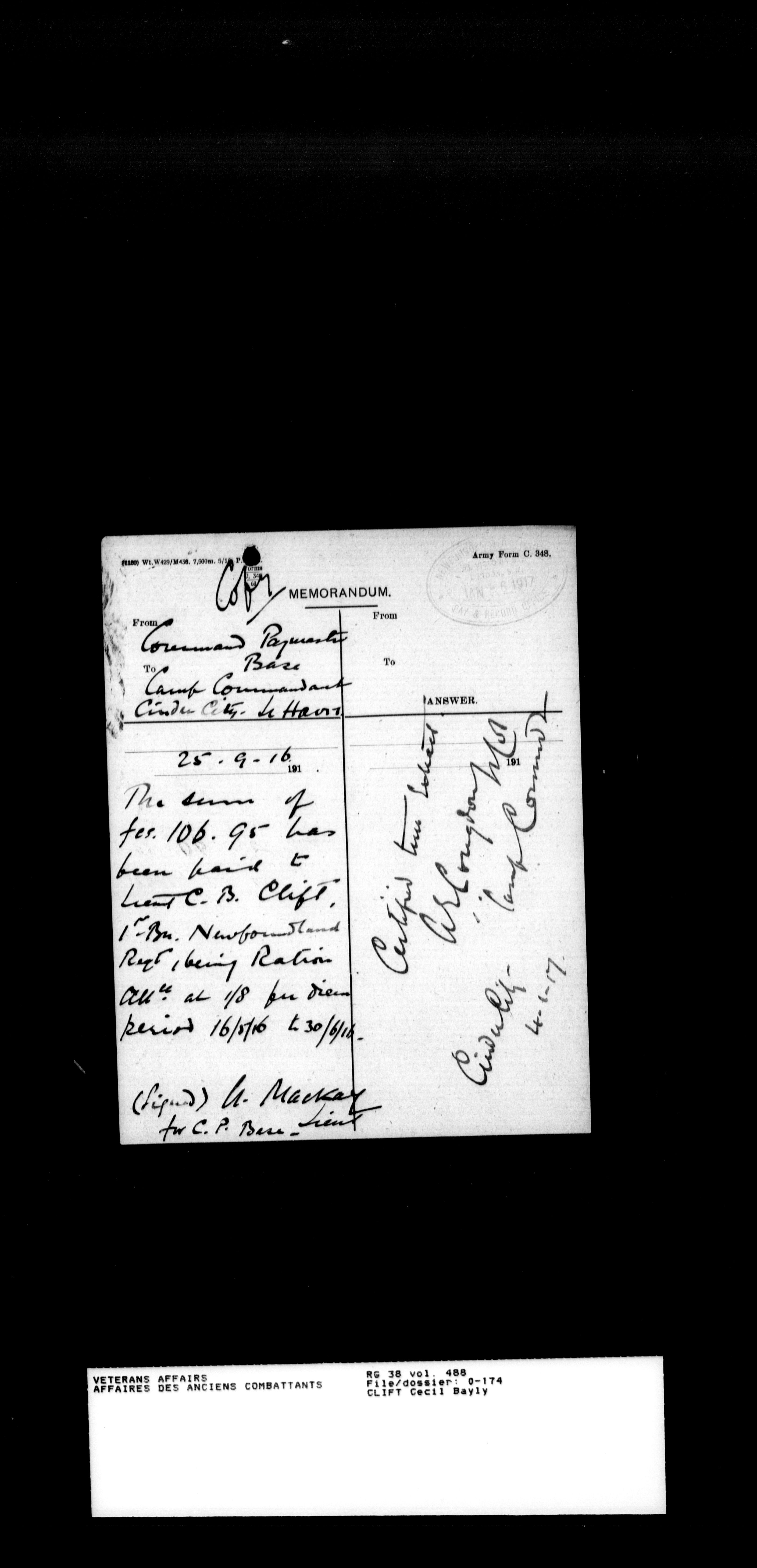 Military service files for members of the Royal Newfoundland Regiment and bandsmen and the Newfoundland Forestry Corps (1914-1919) - 18016