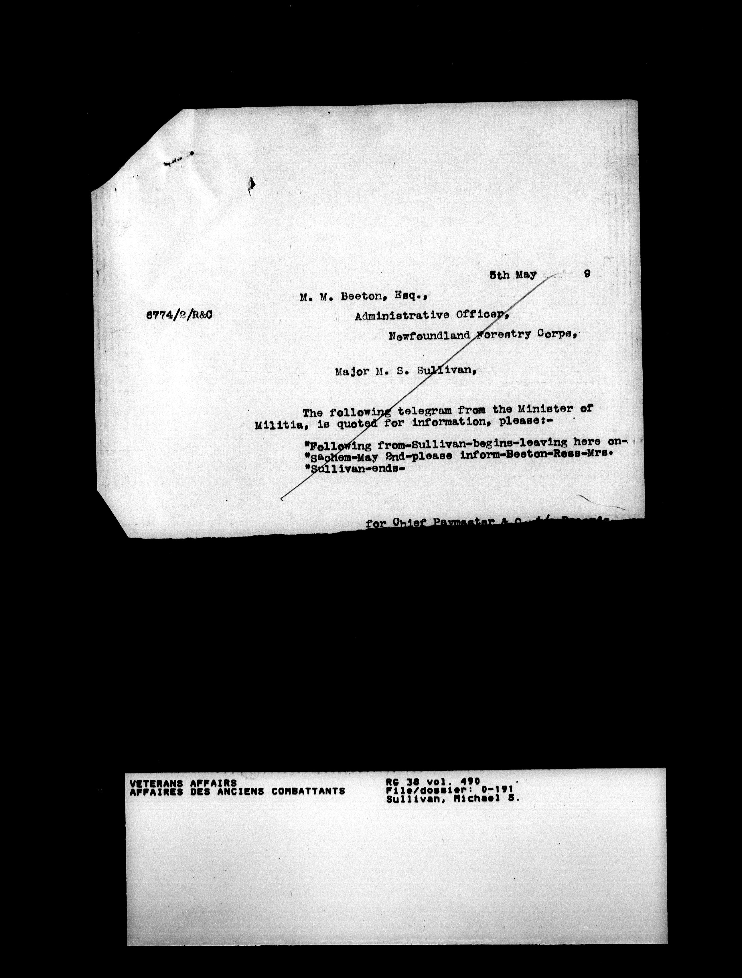 Military service files for members of the Royal Newfoundland Regiment and bandsmen and the Newfoundland Forestry Corps (1914-1919) - 18017