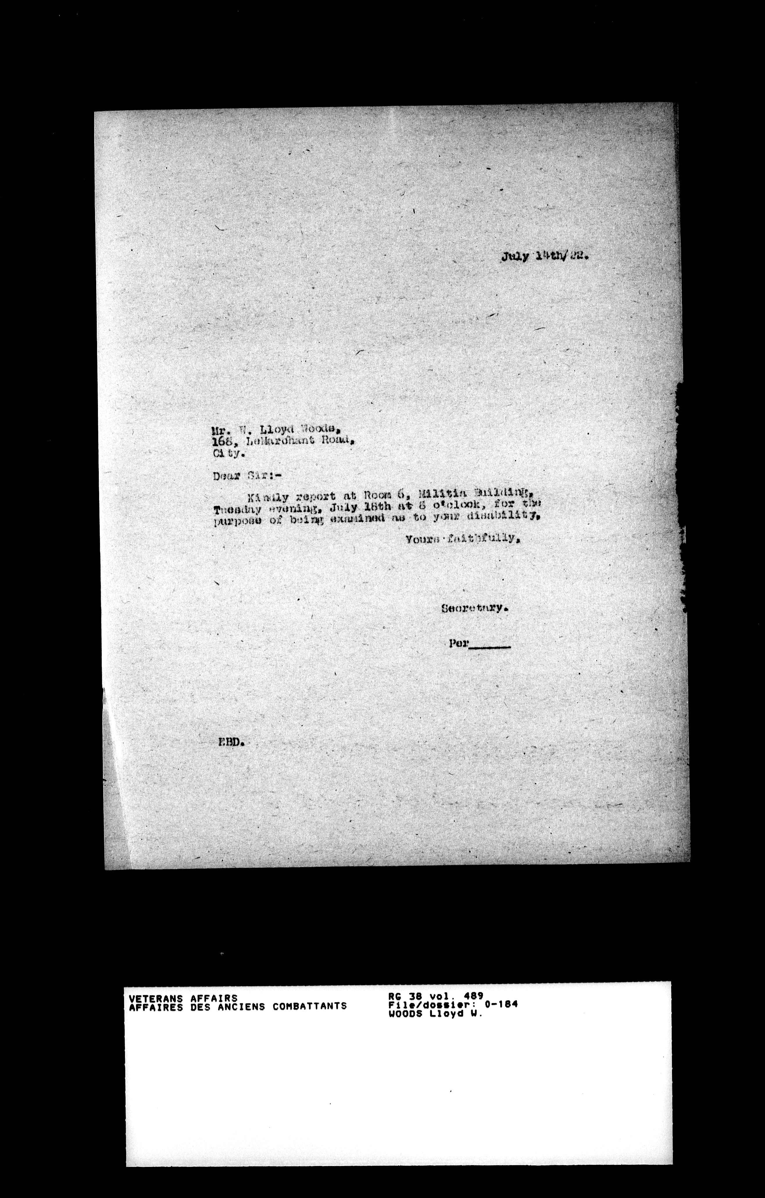 Military service files for members of the Royal Newfoundland Regiment and bandsmen and the Newfoundland Forestry Corps (1914-1919) - 18017