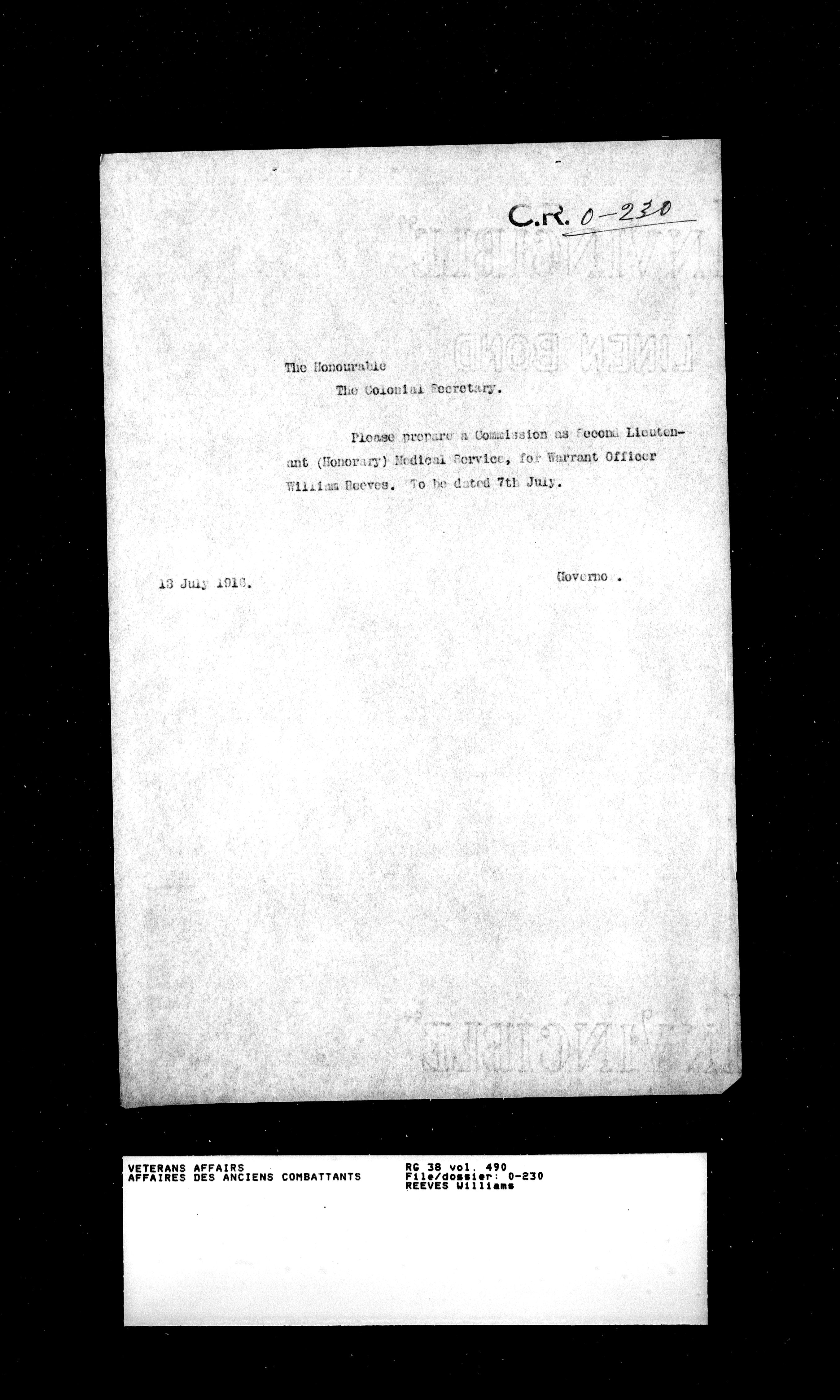 Royal Newfoundland Regiment service files : T-18018