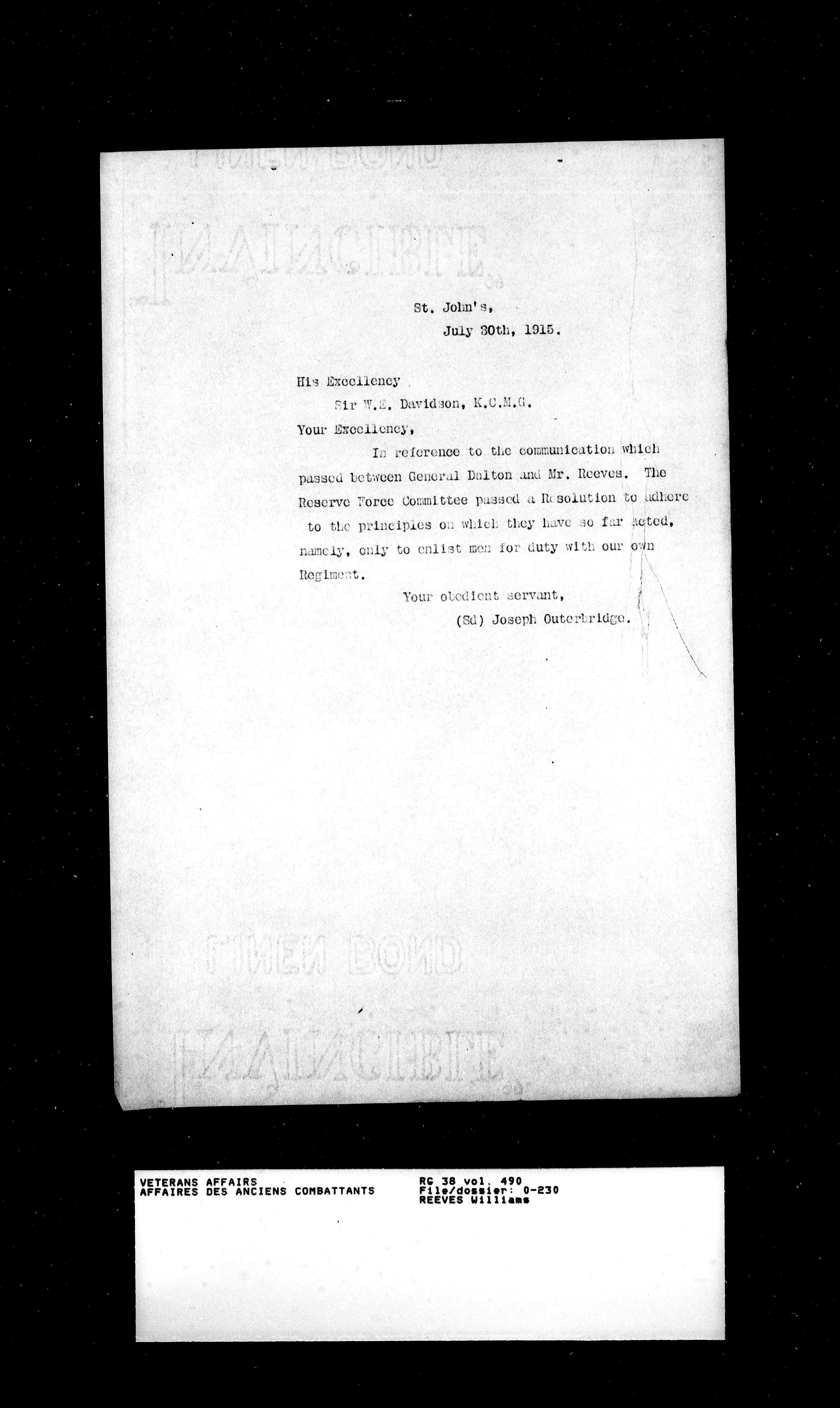 Royal Newfoundland Regiment service files : T-18018