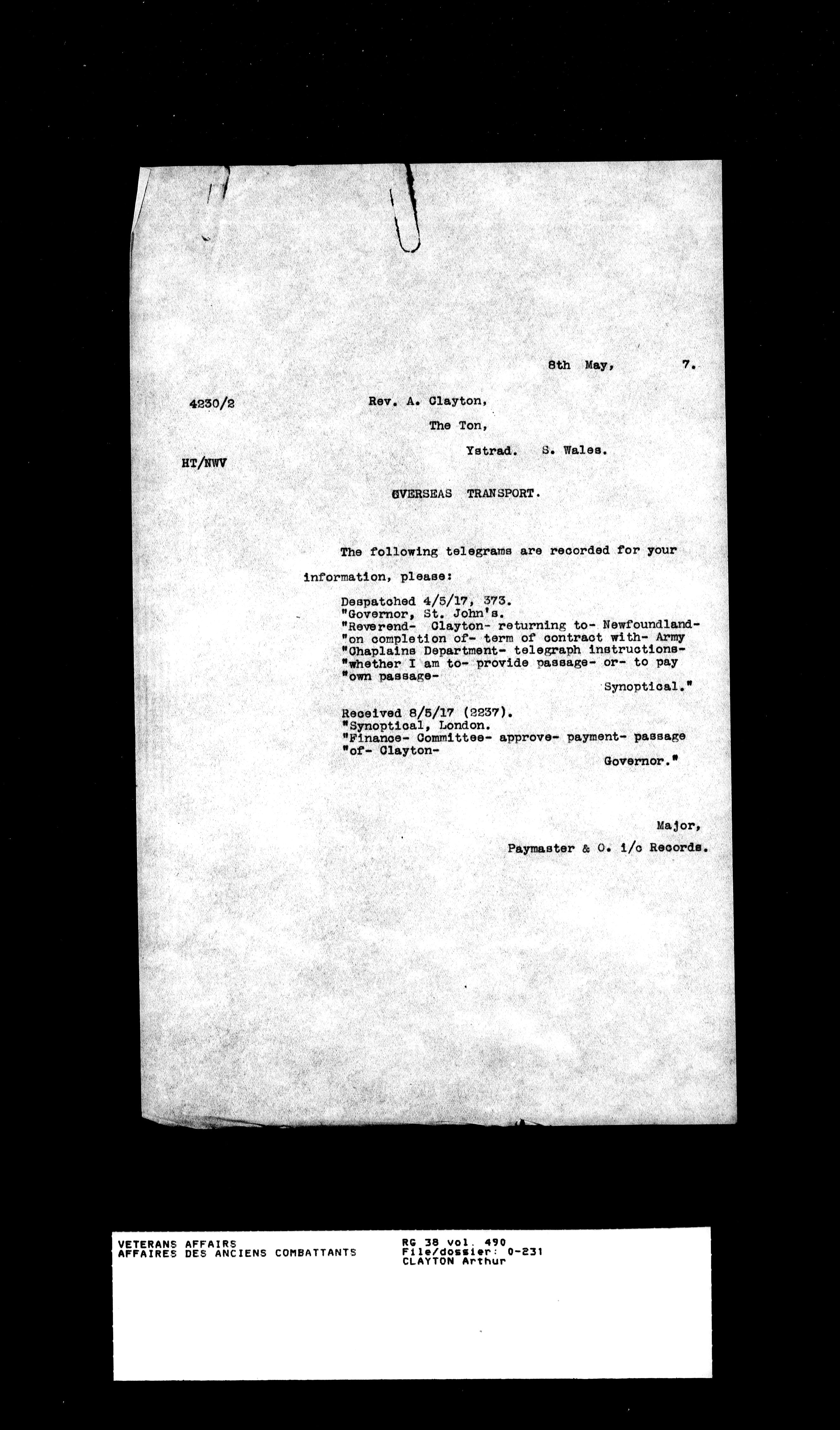 Military service files for members of the Royal Newfoundland Regiment and bandsmen and the Newfoundland Forestry Corps (1914-1919) - 18019