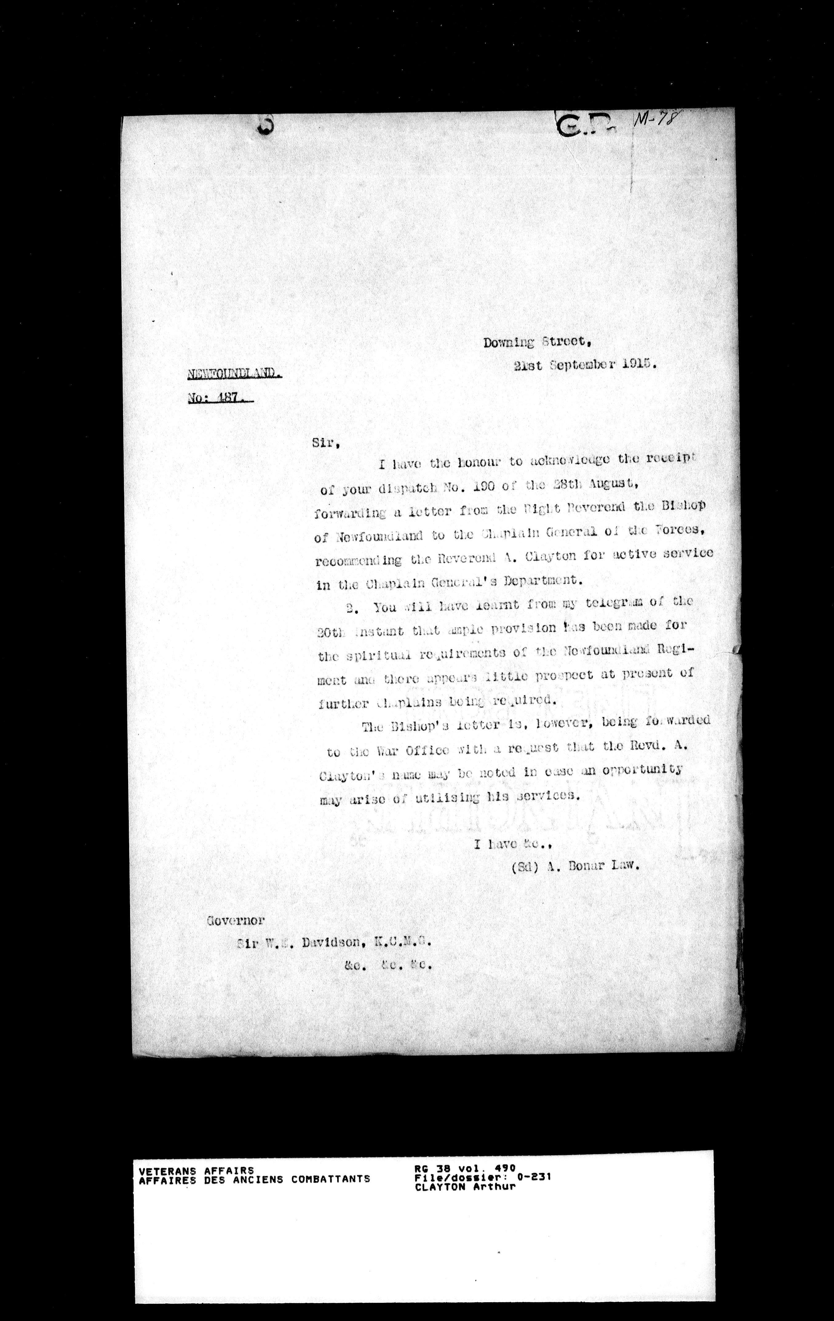 Military service files for members of the Royal Newfoundland Regiment and bandsmen and the Newfoundland Forestry Corps (1914-1919) - 18019