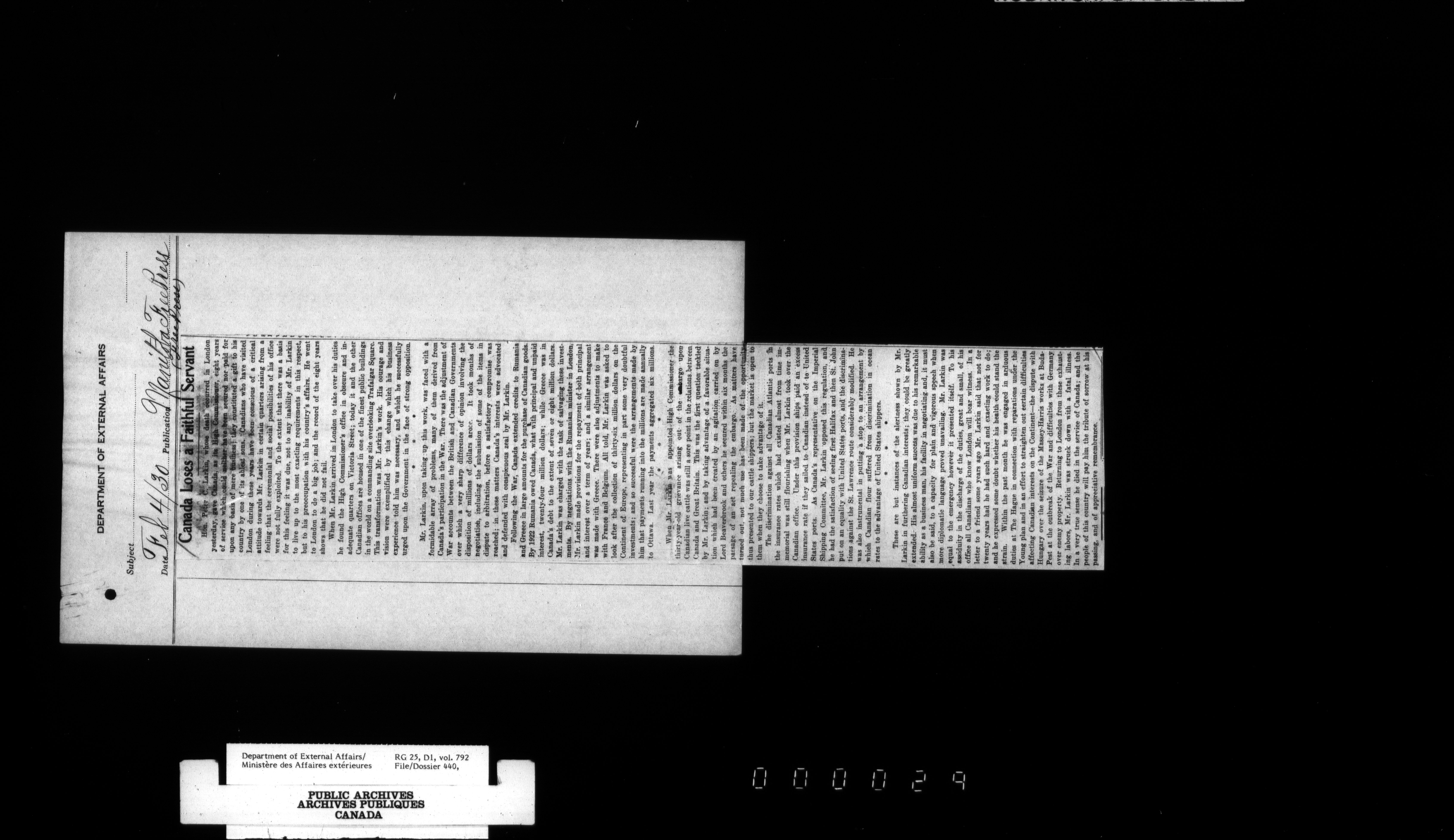 Department of External Affairs : Office of the Under-Secretary of State for External Affairs - 1802