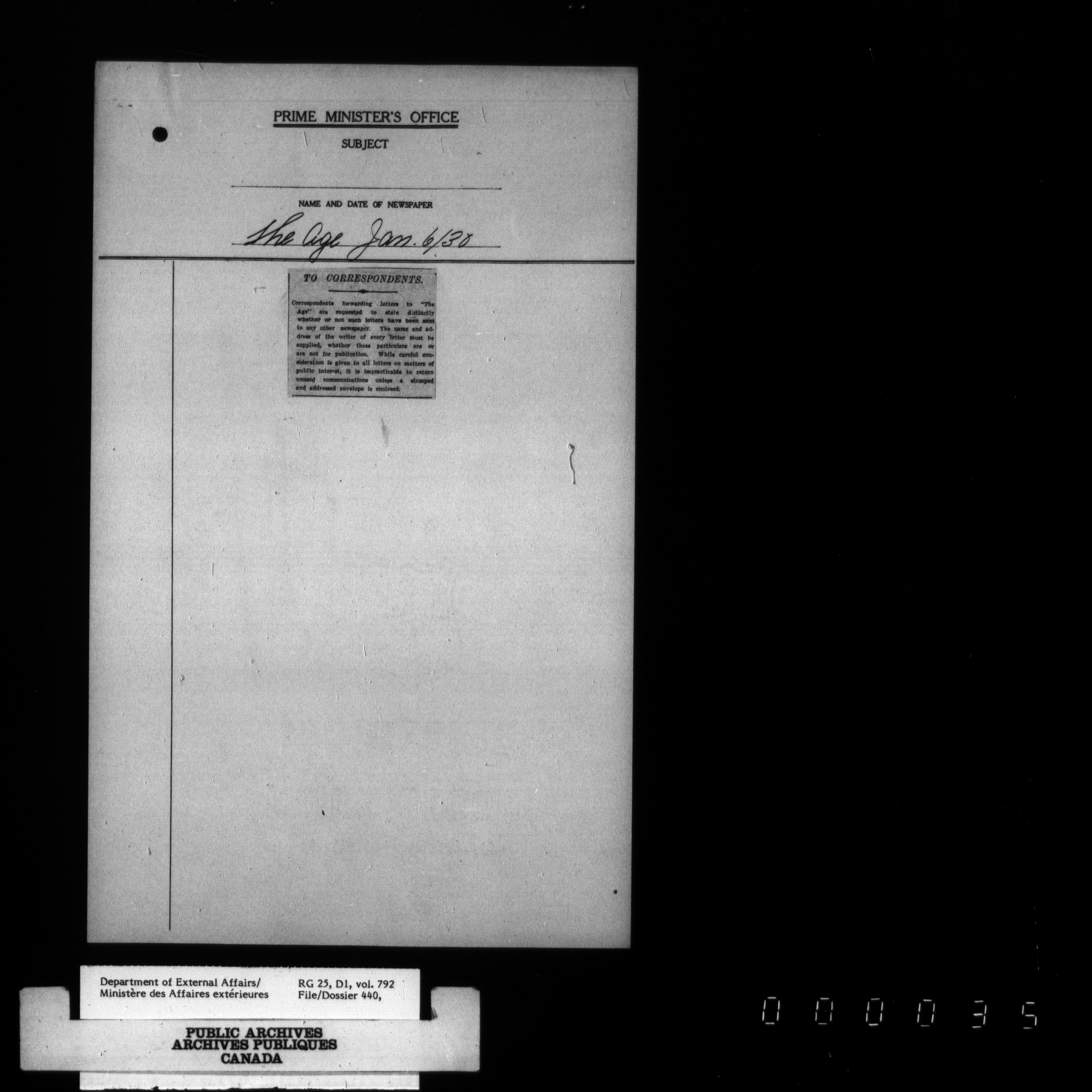 Department of External Affairs : Office of the Under-Secretary of State for External Affairs : T-1802