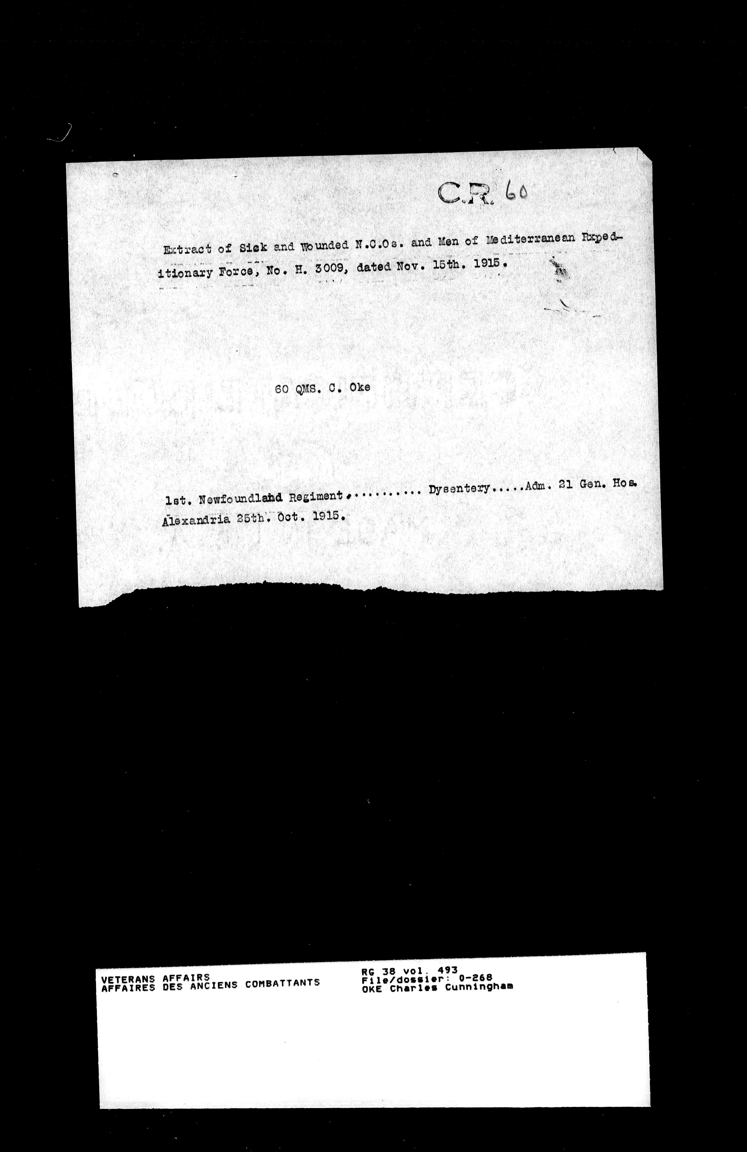 Military service files for members of the Royal Newfoundland Regiment and bandsmen and the Newfoundland Forestry Corps (1914-1919) - 18021