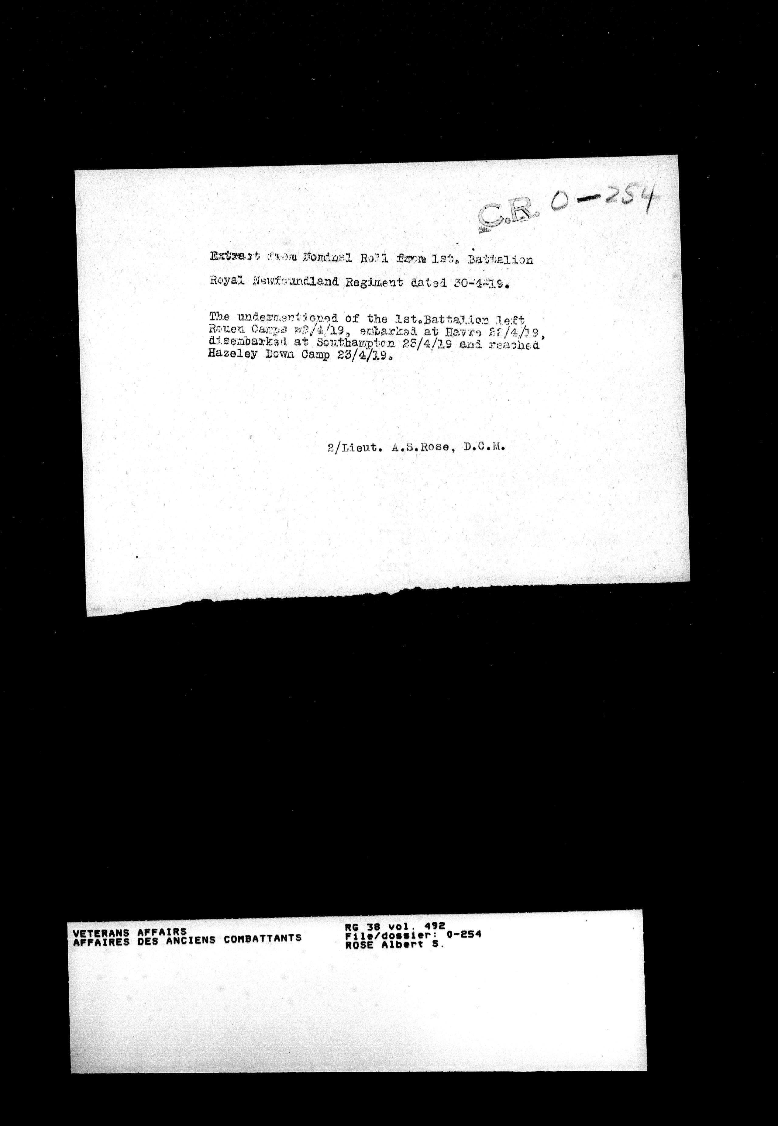 Military service files for members of the Royal Newfoundland Regiment and bandsmen and the Newfoundland Forestry Corps (1914-1919) - 18021