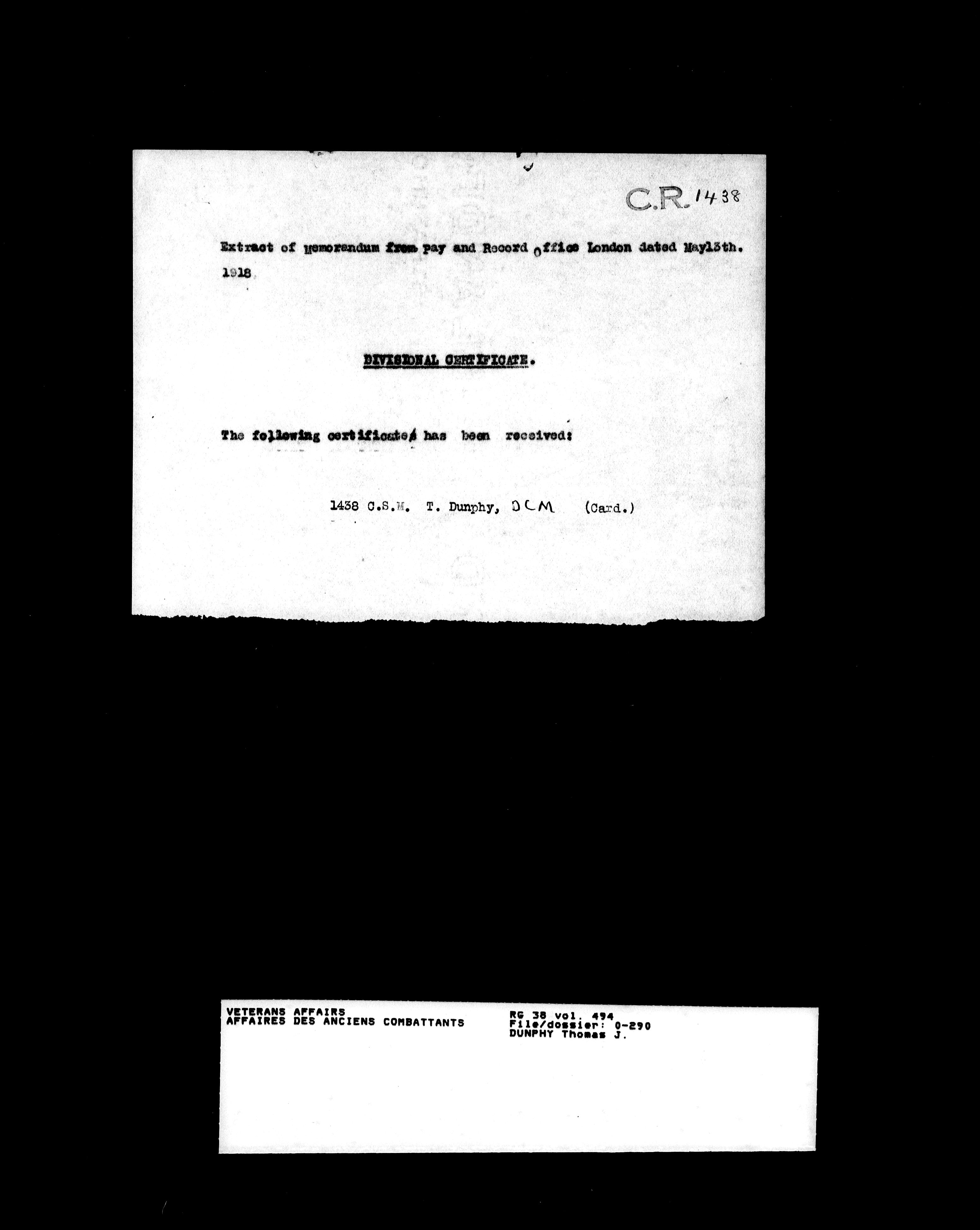 Military service files for members of the Royal Newfoundland Regiment and bandsmen and the Newfoundland Forestry Corps (1914-1919) - 18022