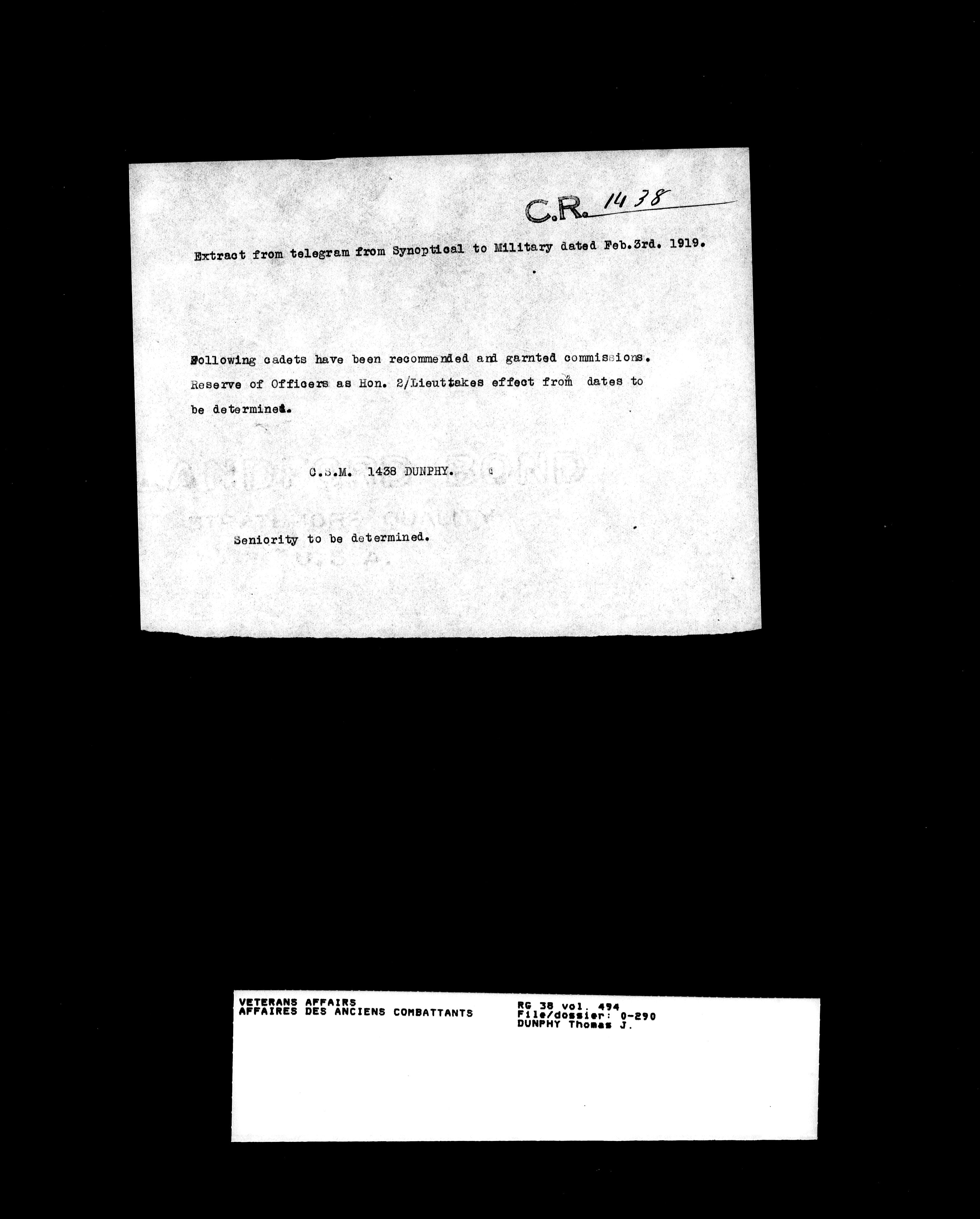 Military service files for members of the Royal Newfoundland Regiment and bandsmen and the Newfoundland Forestry Corps (1914-1919) - 18022