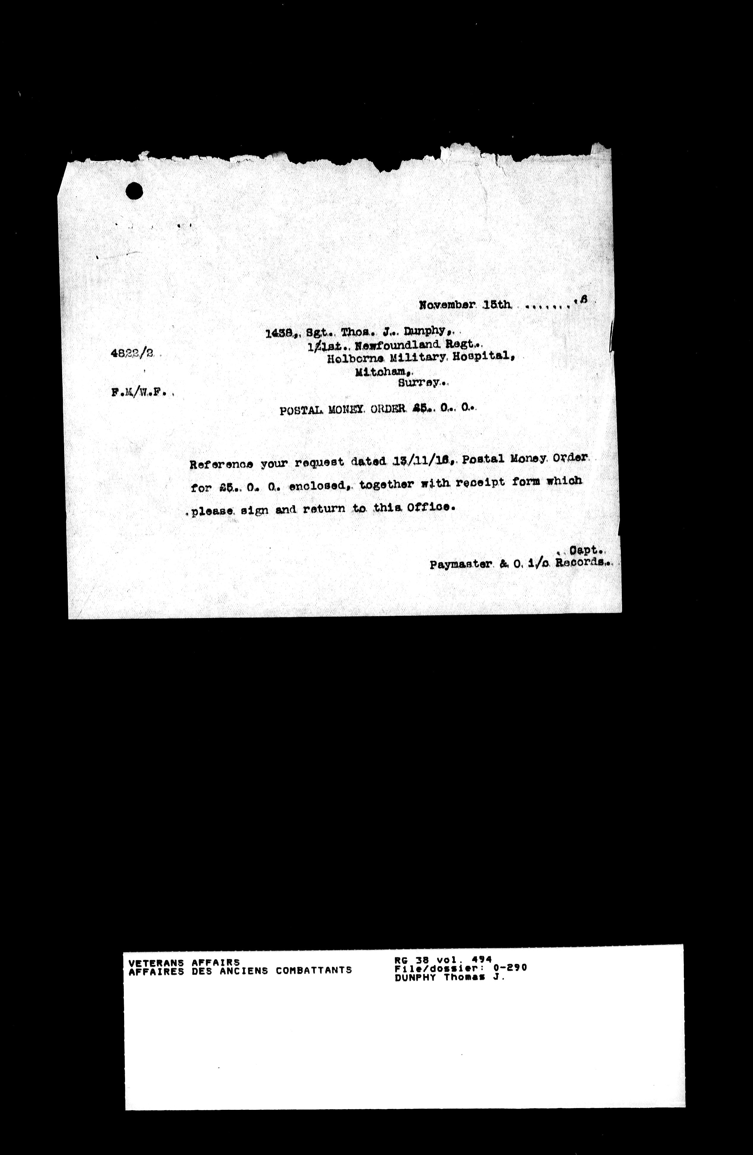 Military service files for members of the Royal Newfoundland Regiment and bandsmen and the Newfoundland Forestry Corps (1914-1919) - 18023