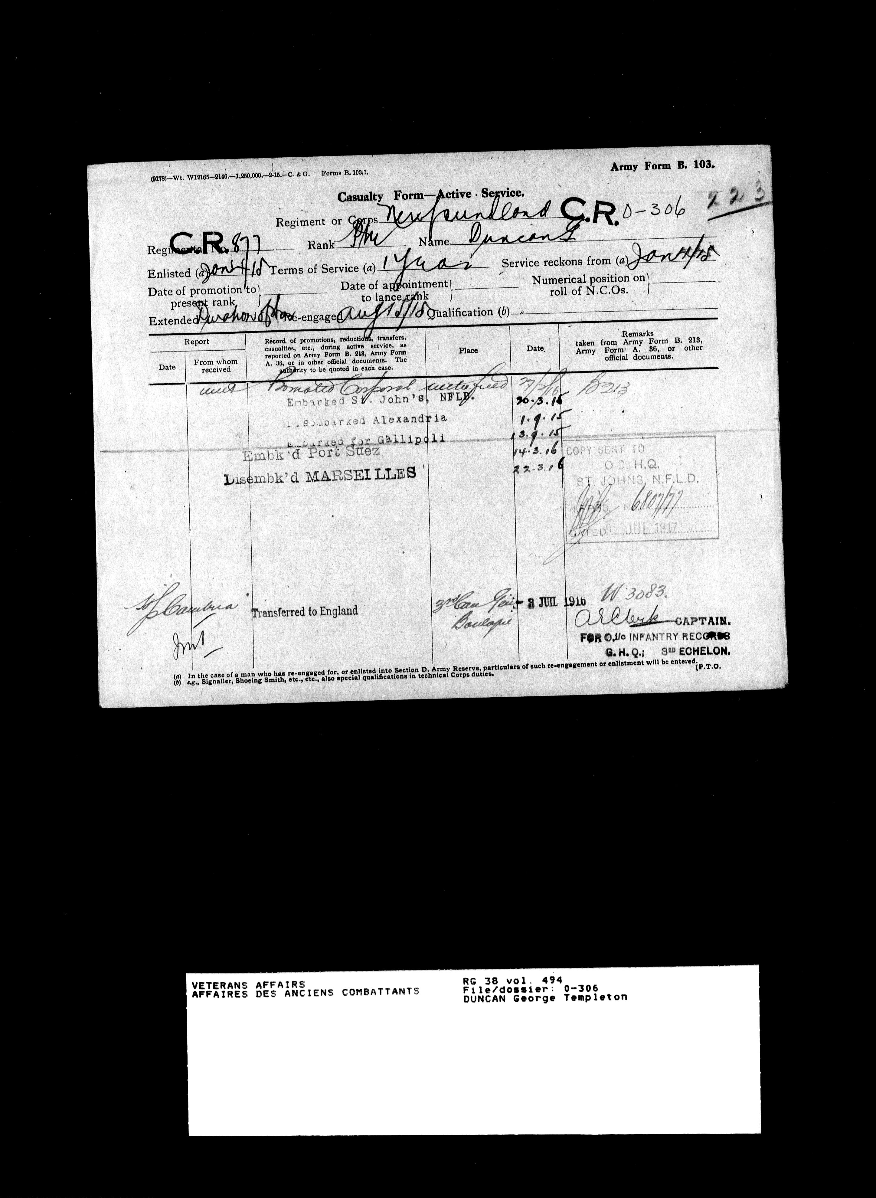 Military service files for members of the Royal Newfoundland Regiment and bandsmen and the Newfoundland Forestry Corps (1914-1919) - 18024