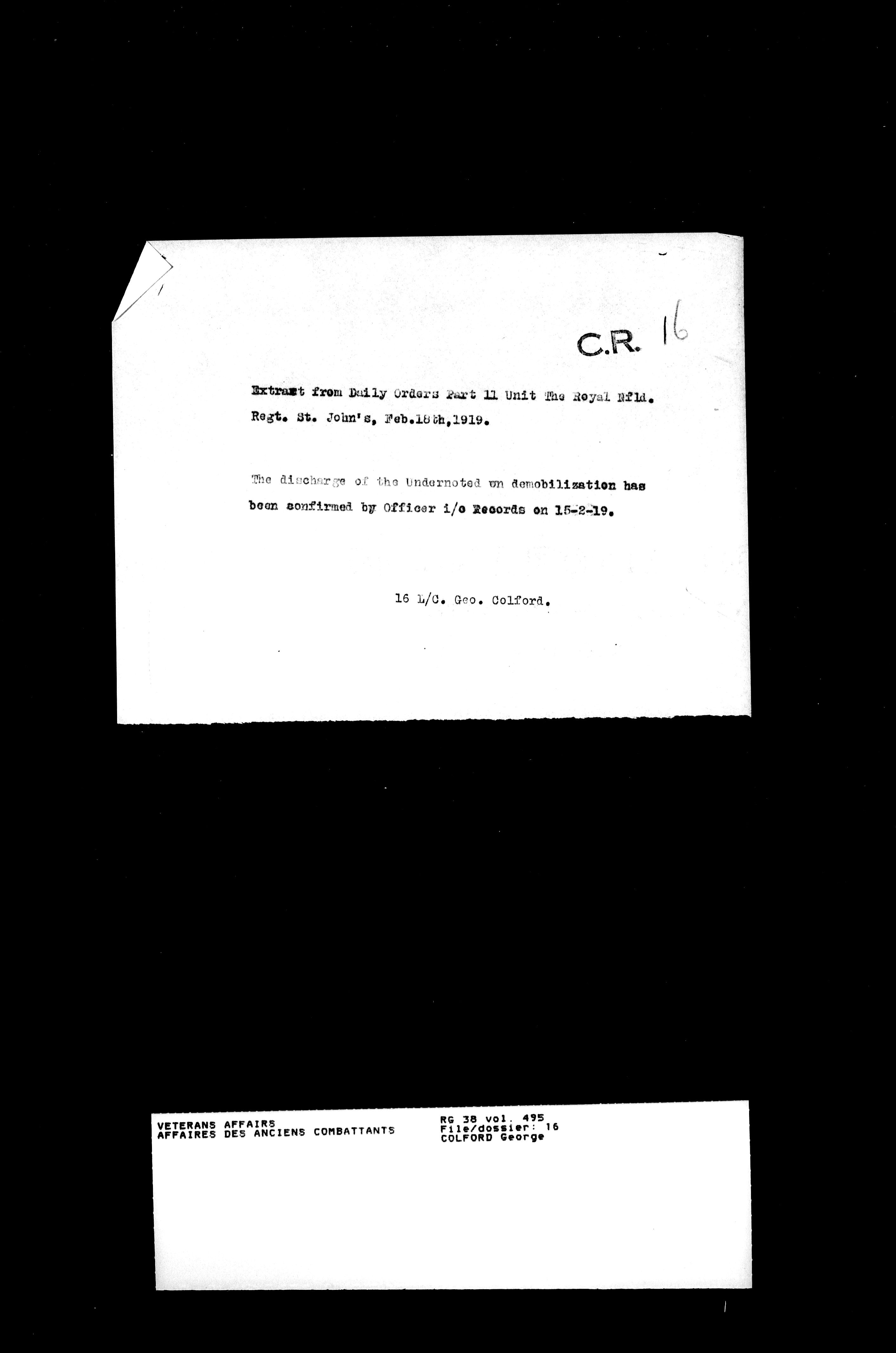 Military service files for members of the Royal Newfoundland Regiment and bandsmen and the Newfoundland Forestry Corps (1914-1919) - 18025