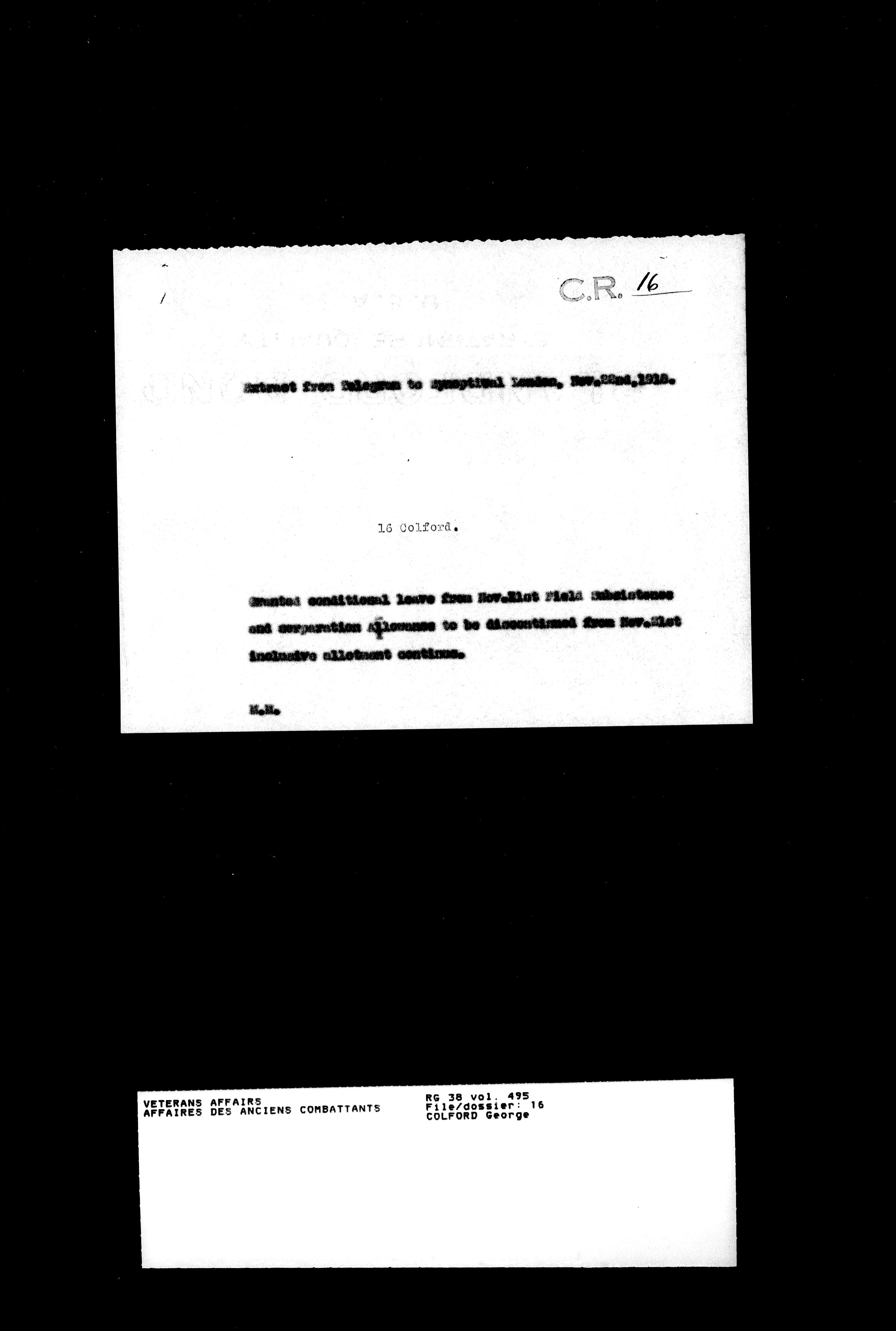 Military service files for members of the Royal Newfoundland Regiment and bandsmen and the Newfoundland Forestry Corps (1914-1919) - 18025