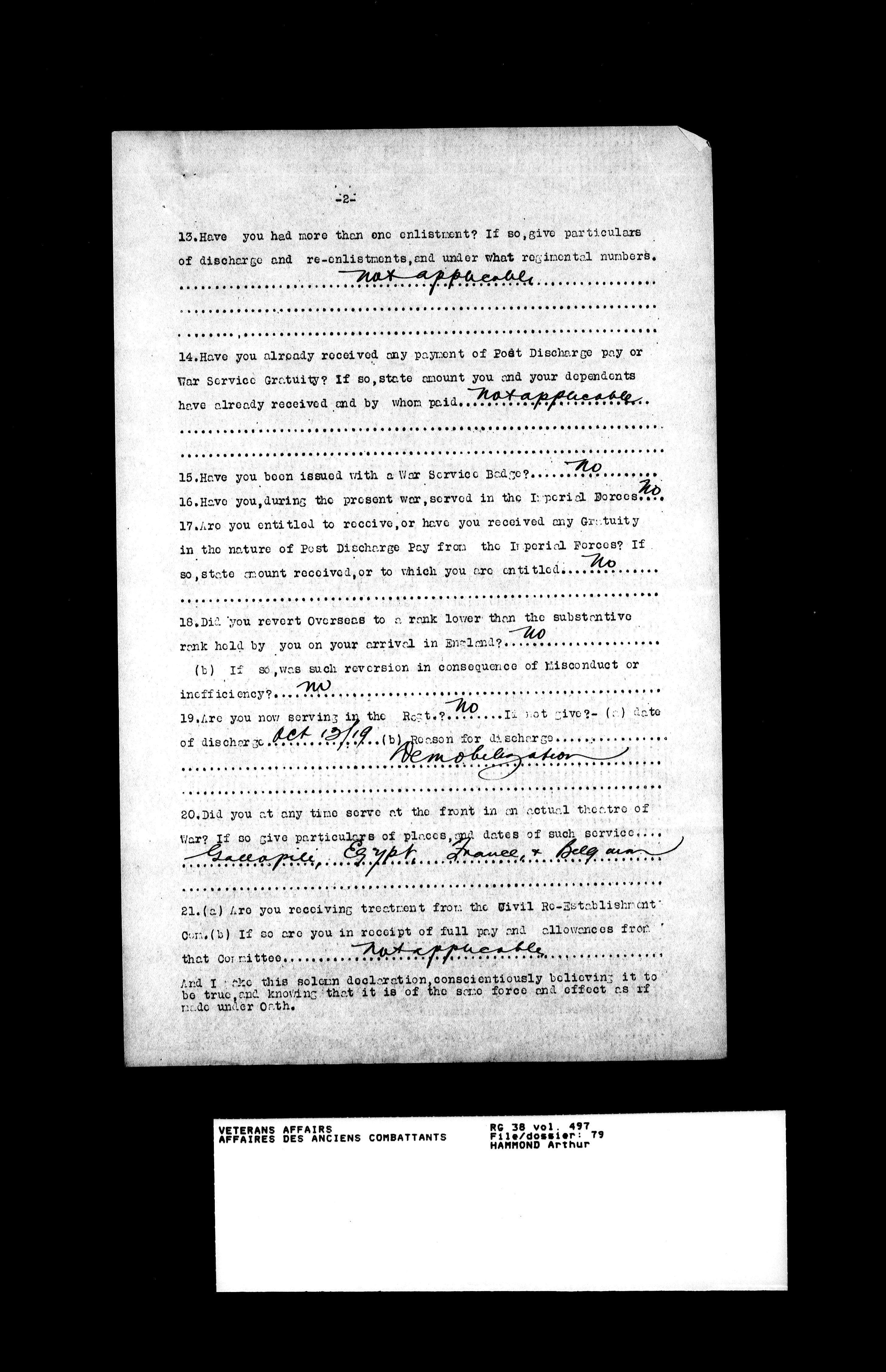 Military service files for members of the Royal Newfoundland Regiment and bandsmen and the Newfoundland Forestry Corps (1914-1919) - 18028