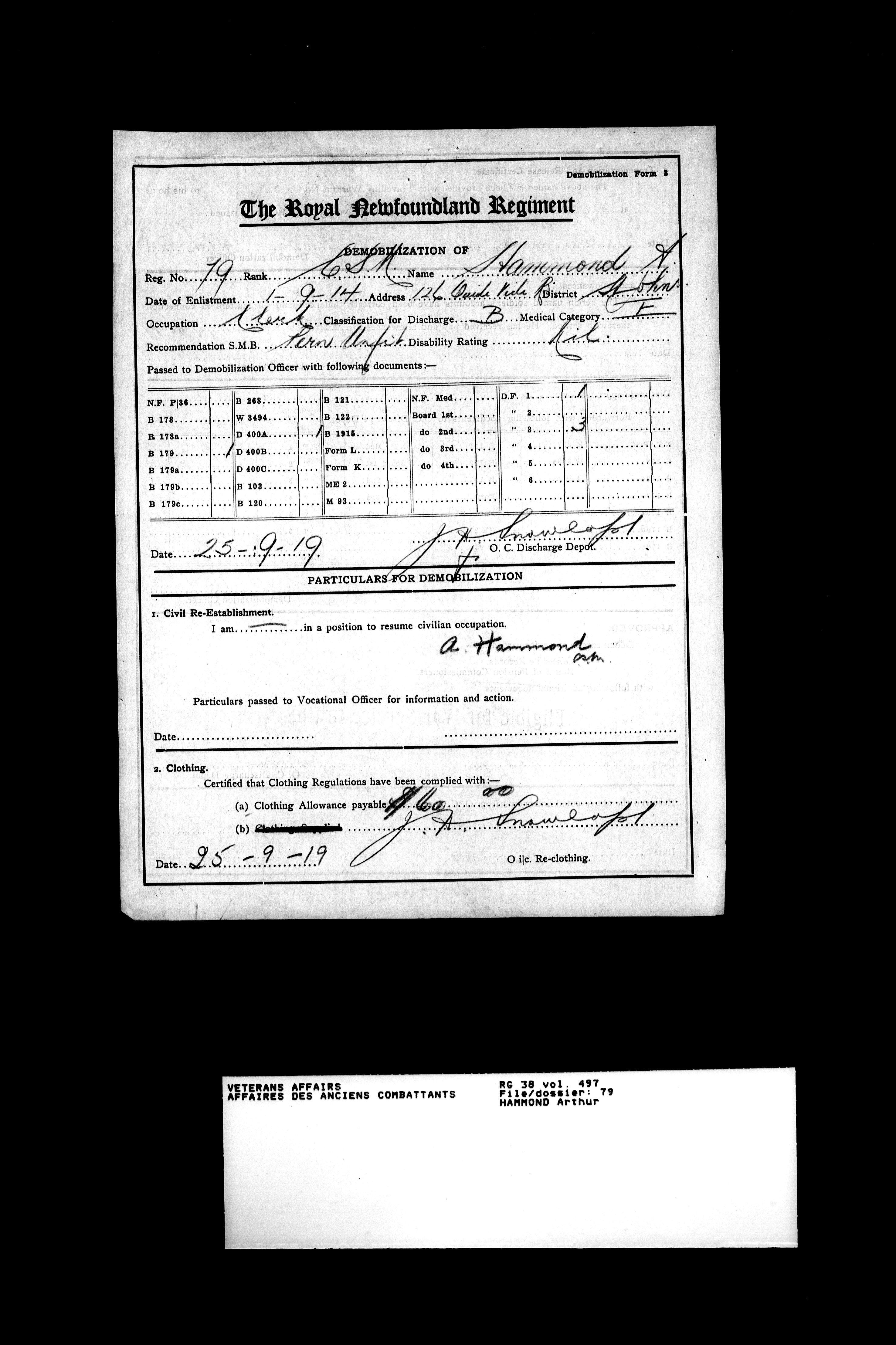 Military service files for members of the Royal Newfoundland Regiment and bandsmen and the Newfoundland Forestry Corps (1914-1919) - 18028