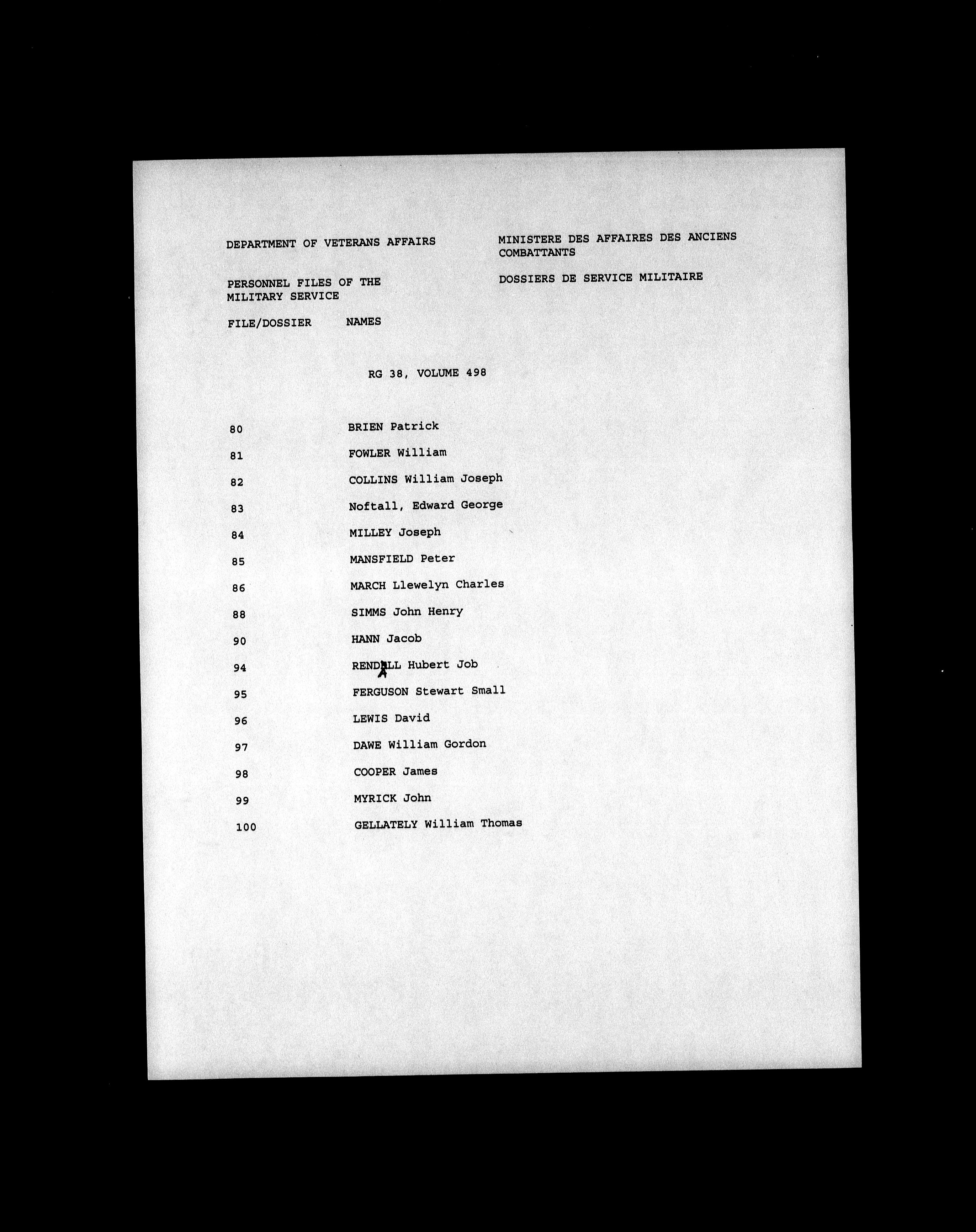 Military service files for members of the Royal Newfoundland Regiment and bandsmen and the Newfoundland Forestry Corps (1914-1919) - 18028