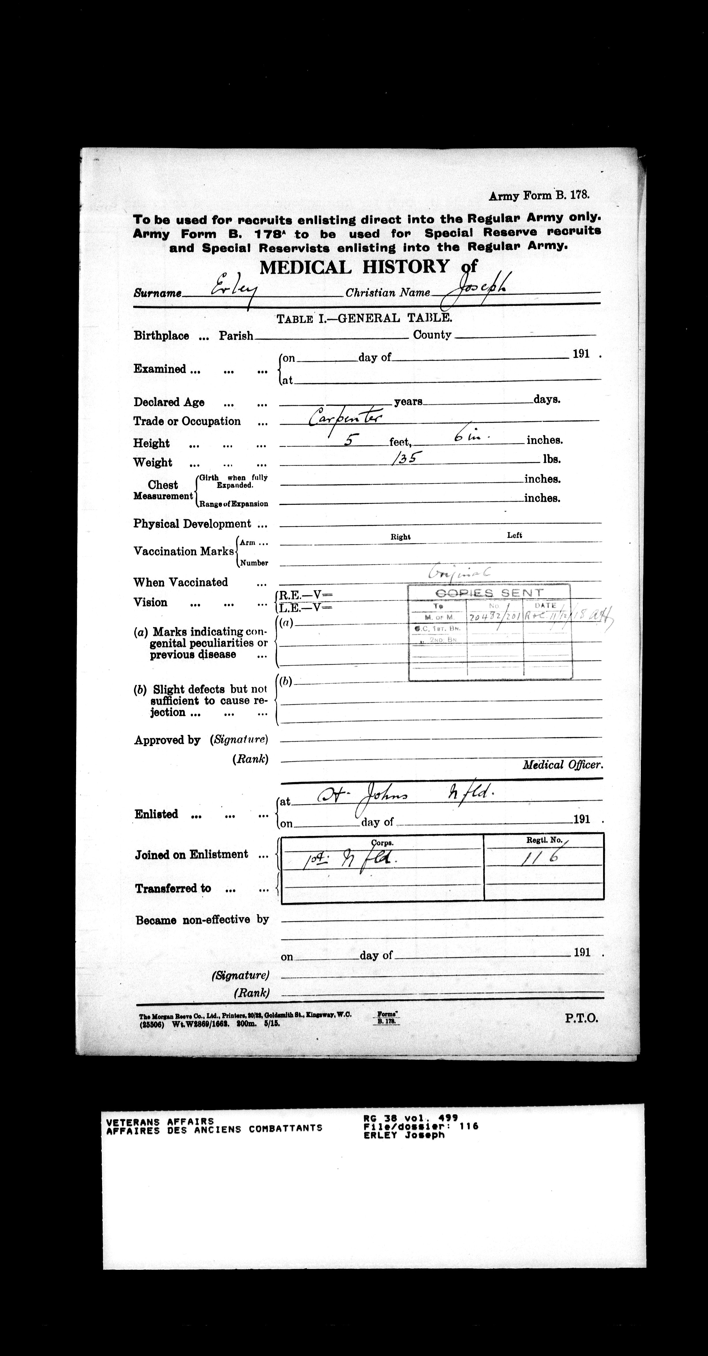 Military service files for members of the Royal Newfoundland Regiment and bandsmen and the Newfoundland Forestry Corps (1914-1919) - 18029