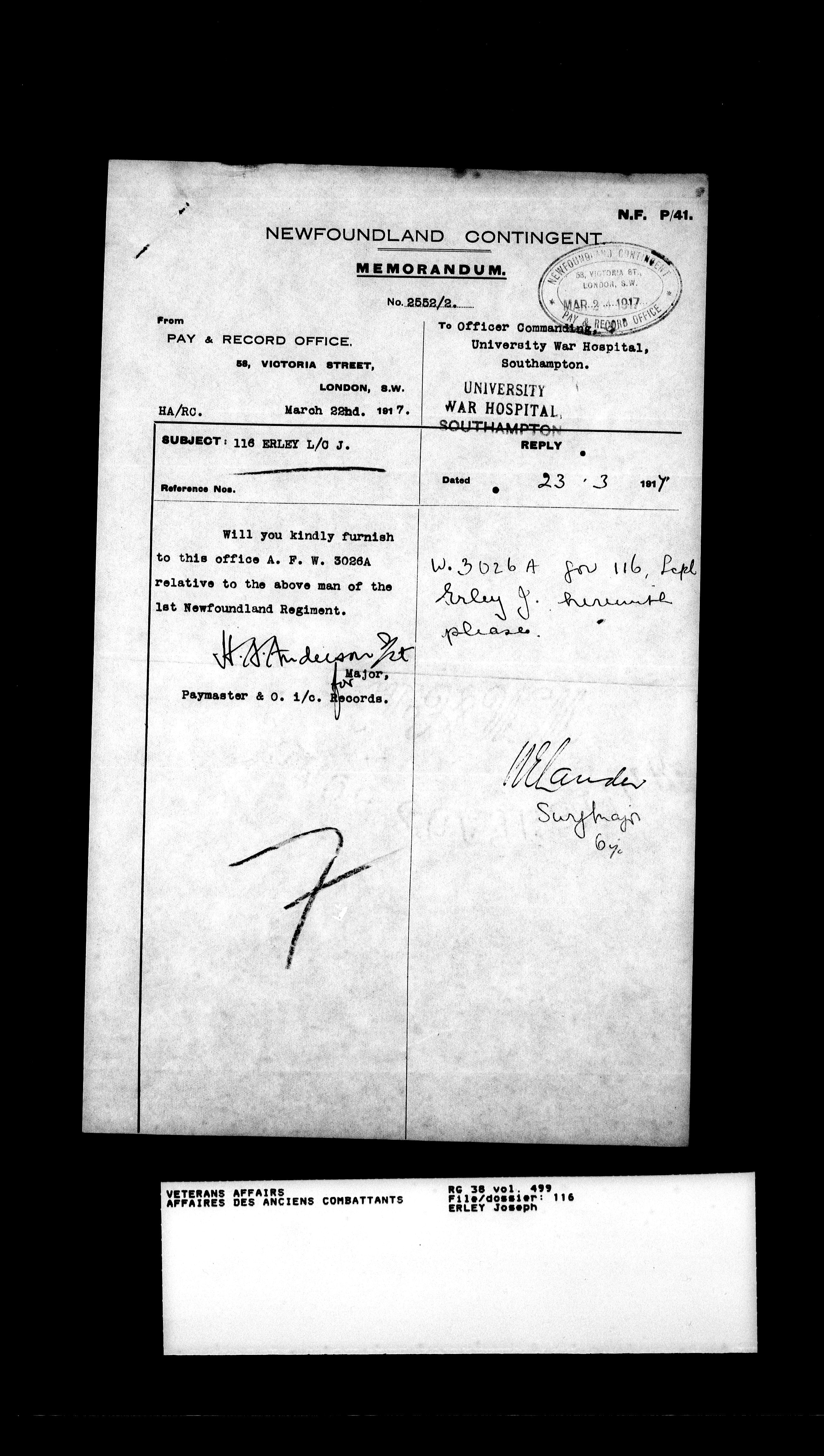 Military service files for members of the Royal Newfoundland Regiment and bandsmen and the Newfoundland Forestry Corps (1914-1919) - 18029