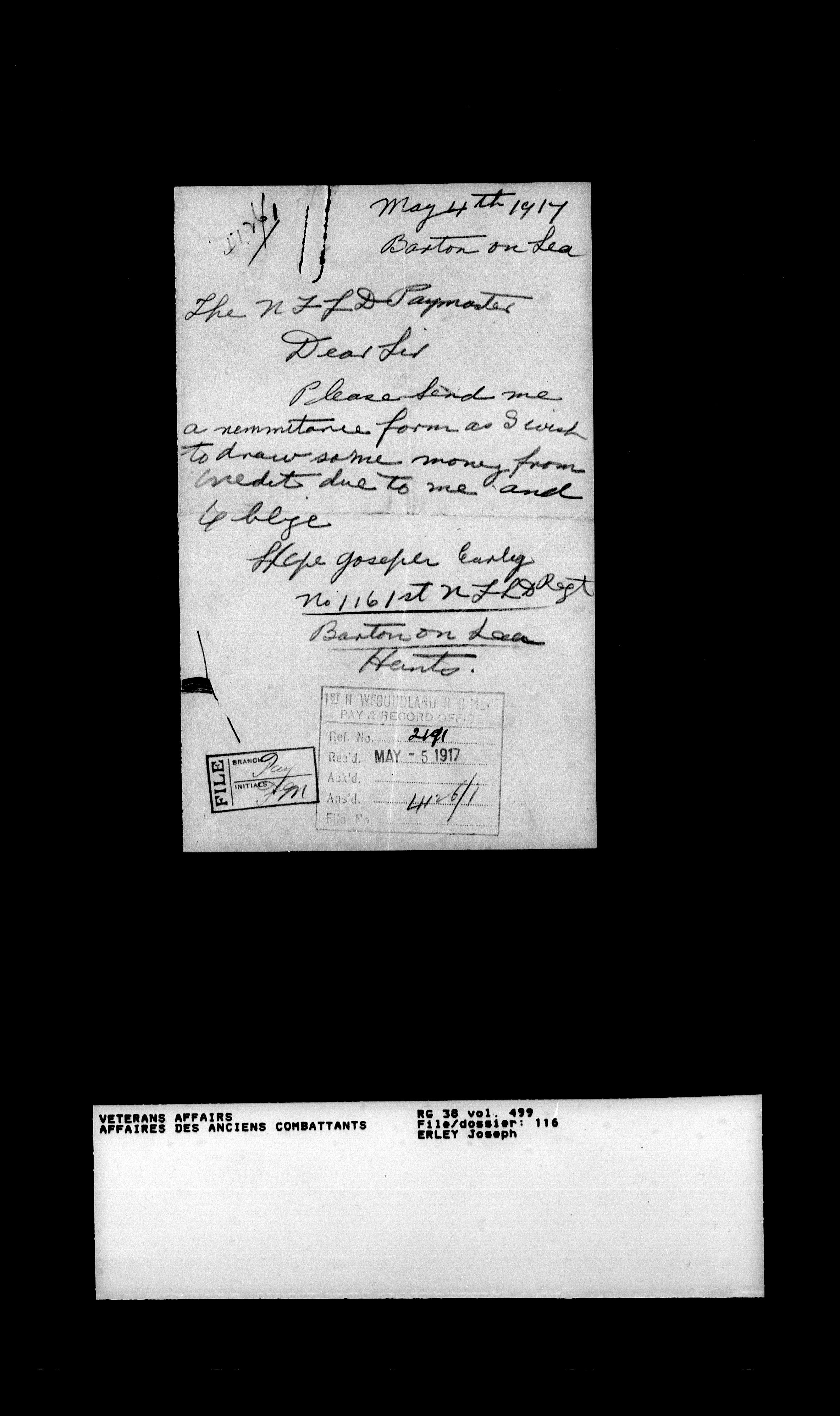 Military service files for members of the Royal Newfoundland Regiment and bandsmen and the Newfoundland Forestry Corps (1914-1919) - 18029