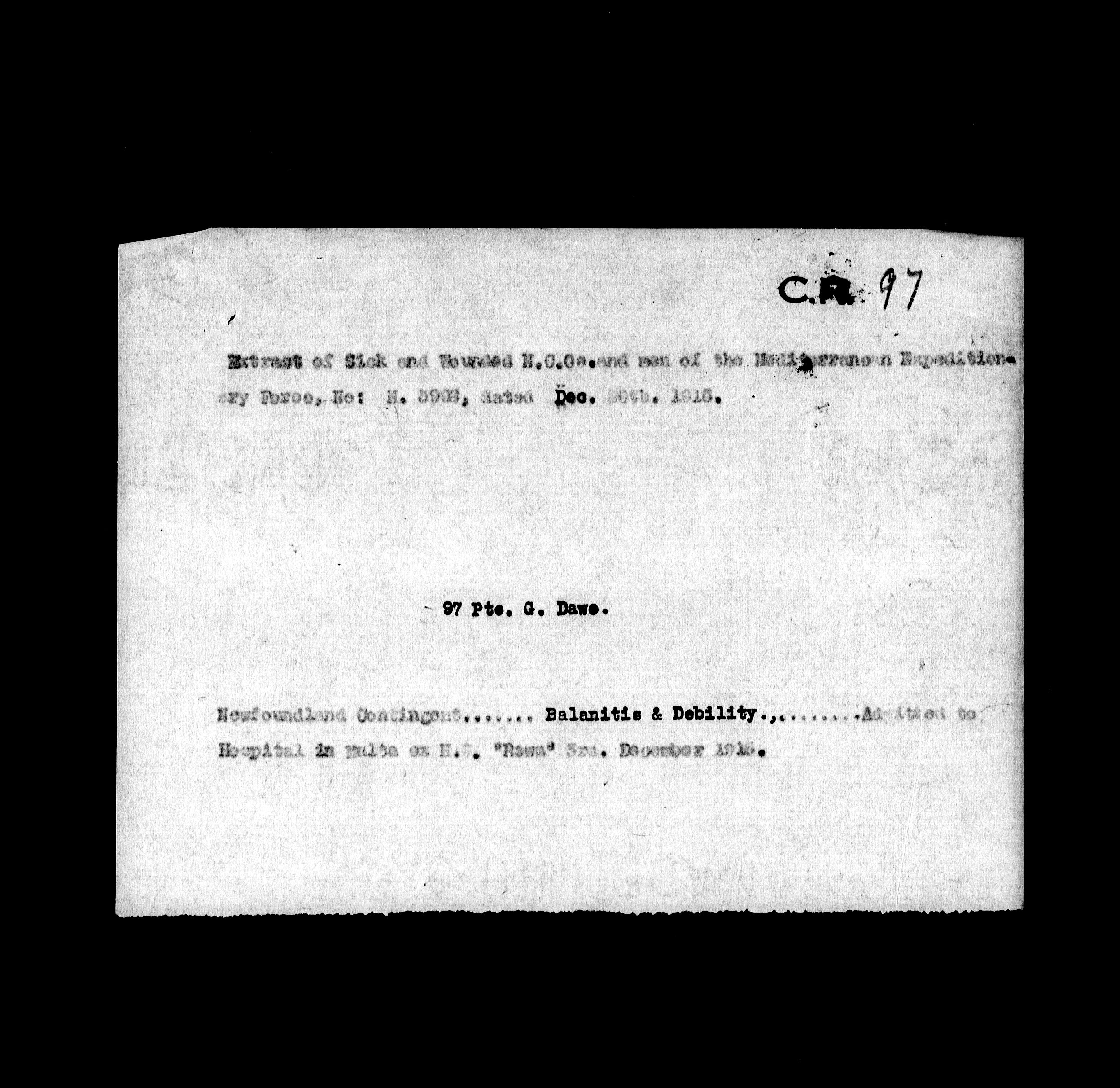 Military service files for members of the Royal Newfoundland Regiment and bandsmen and the Newfoundland Forestry Corps (1914-1919) - 18029