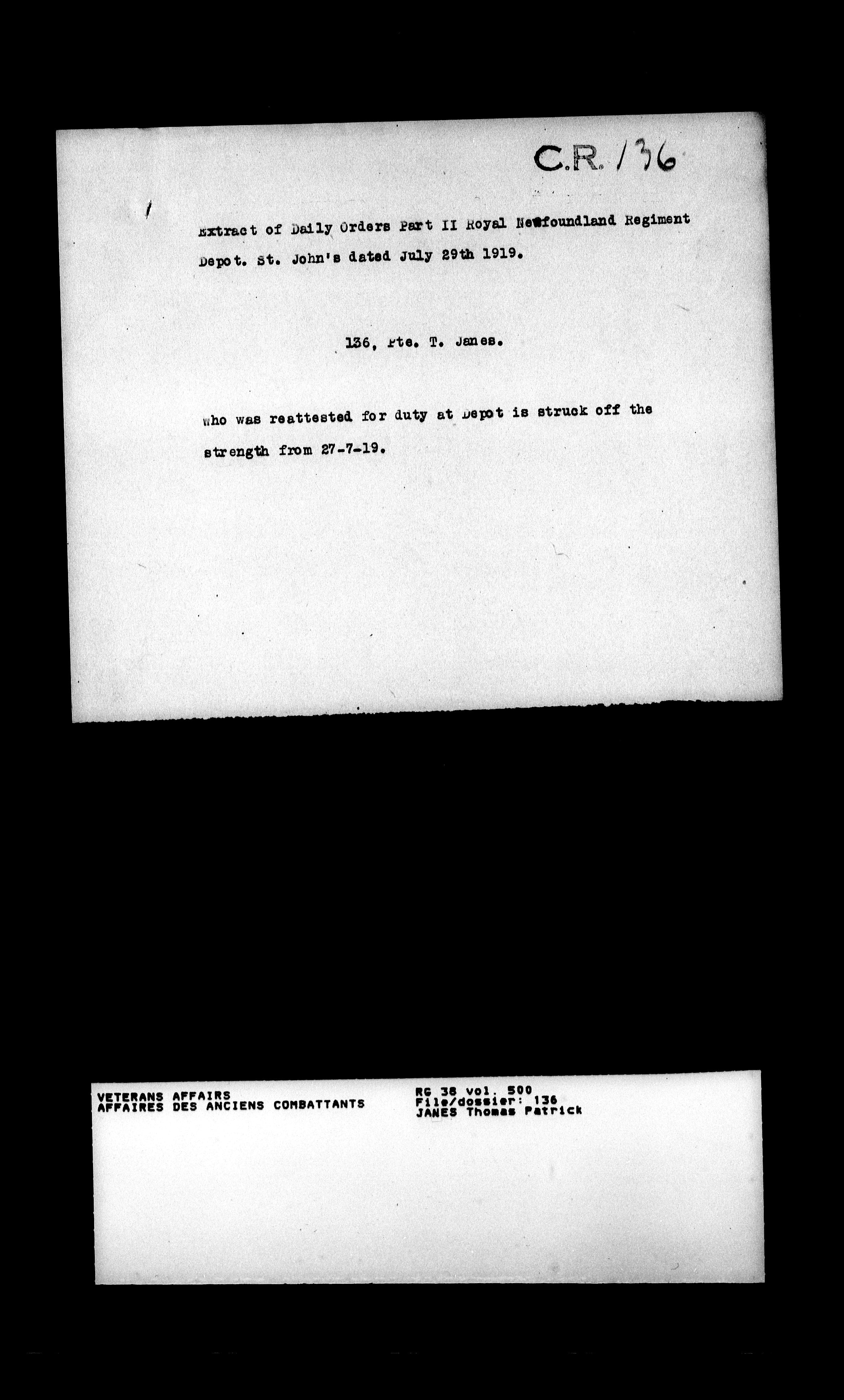 Military service files for members of the Royal Newfoundland Regiment and bandsmen and the Newfoundland Forestry Corps (1914-1919) - 18030