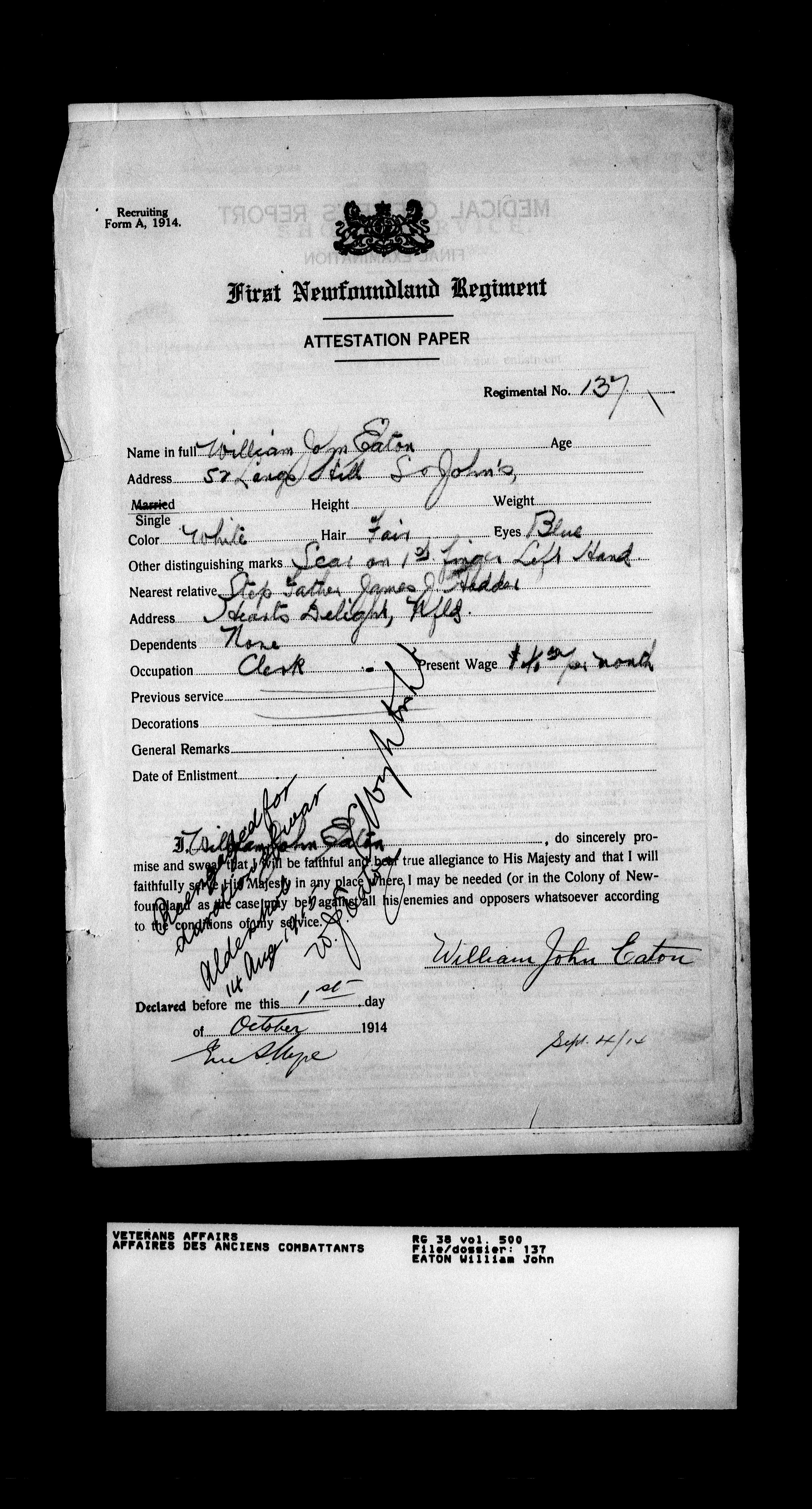 Military service files for members of the Royal Newfoundland Regiment and bandsmen and the Newfoundland Forestry Corps (1914-1919) - 18030