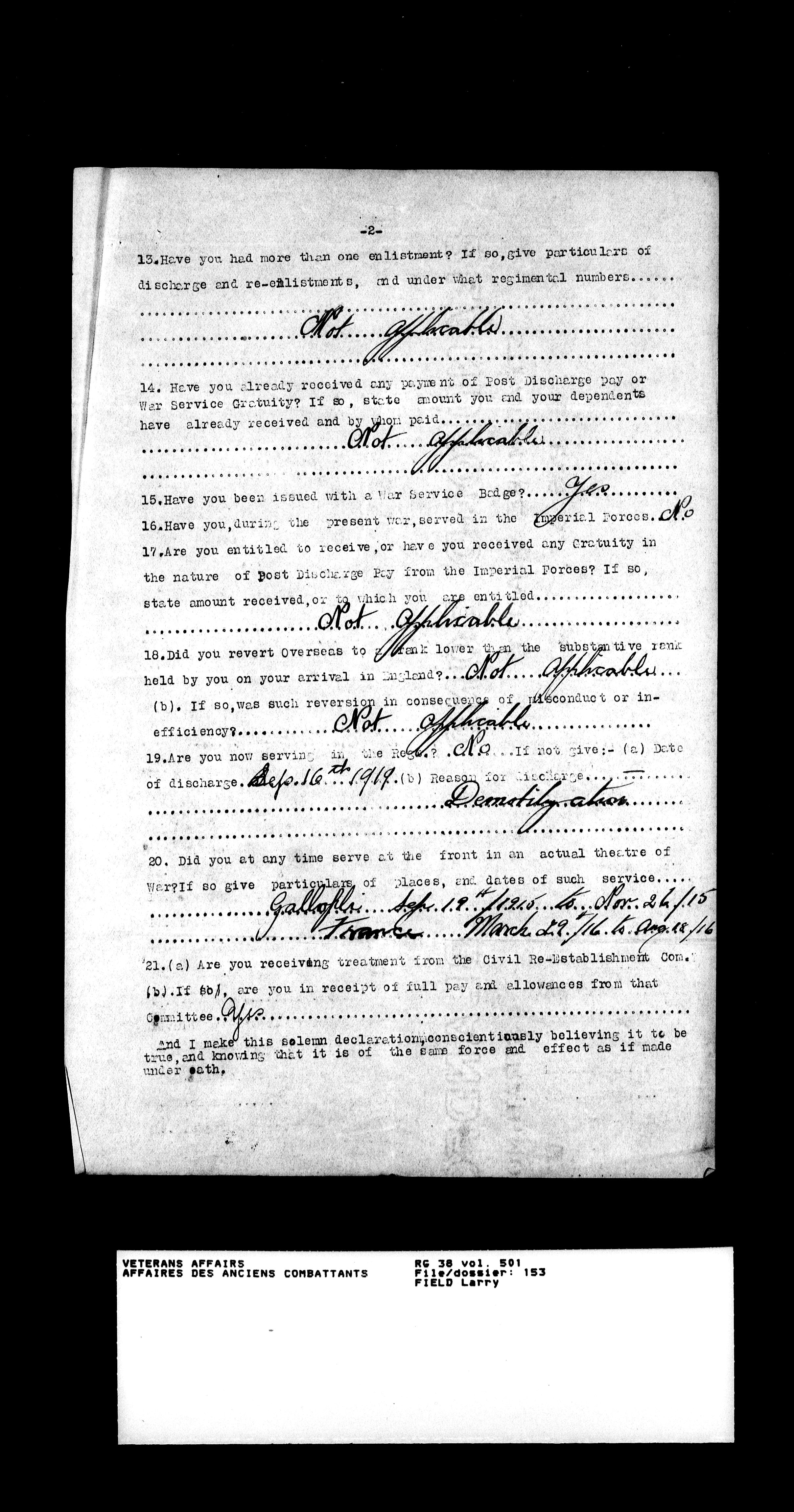 Military service files for members of the Royal Newfoundland Regiment and bandsmen and the Newfoundland Forestry Corps (1914-1919) - 18031