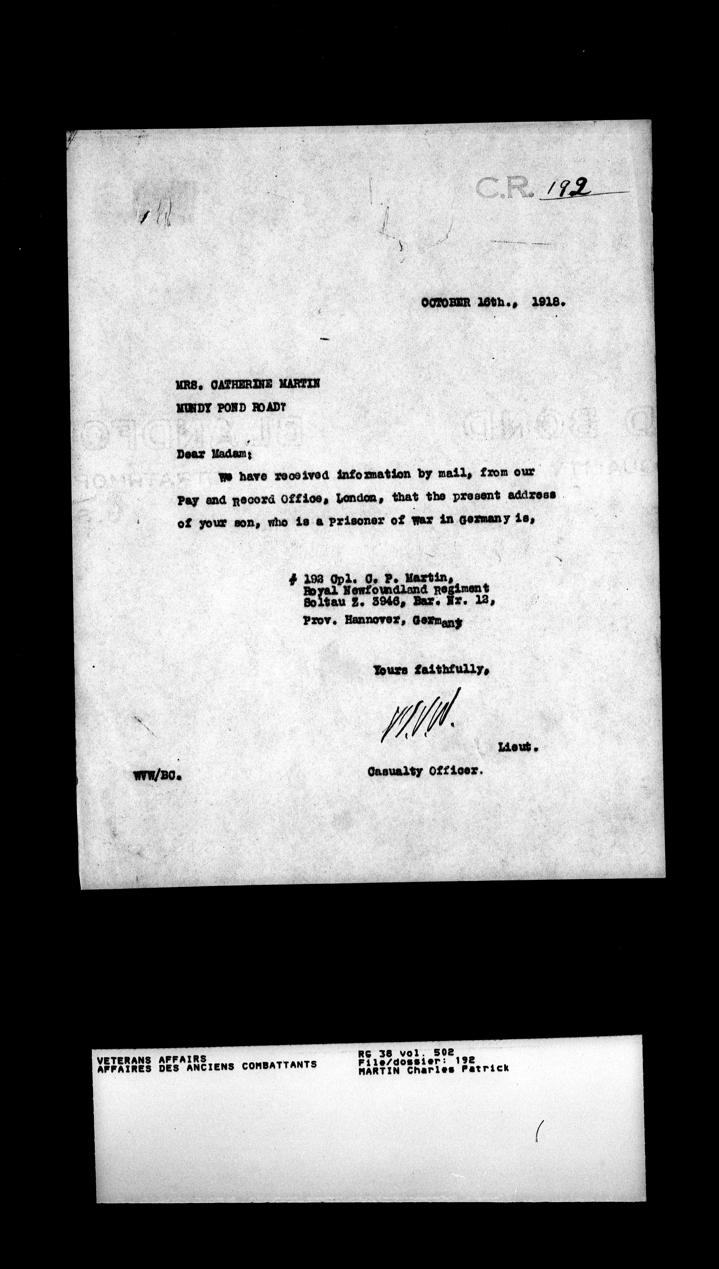Military service files for members of the Royal Newfoundland Regiment and bandsmen and the Newfoundland Forestry Corps (1914-1919) - 18033
