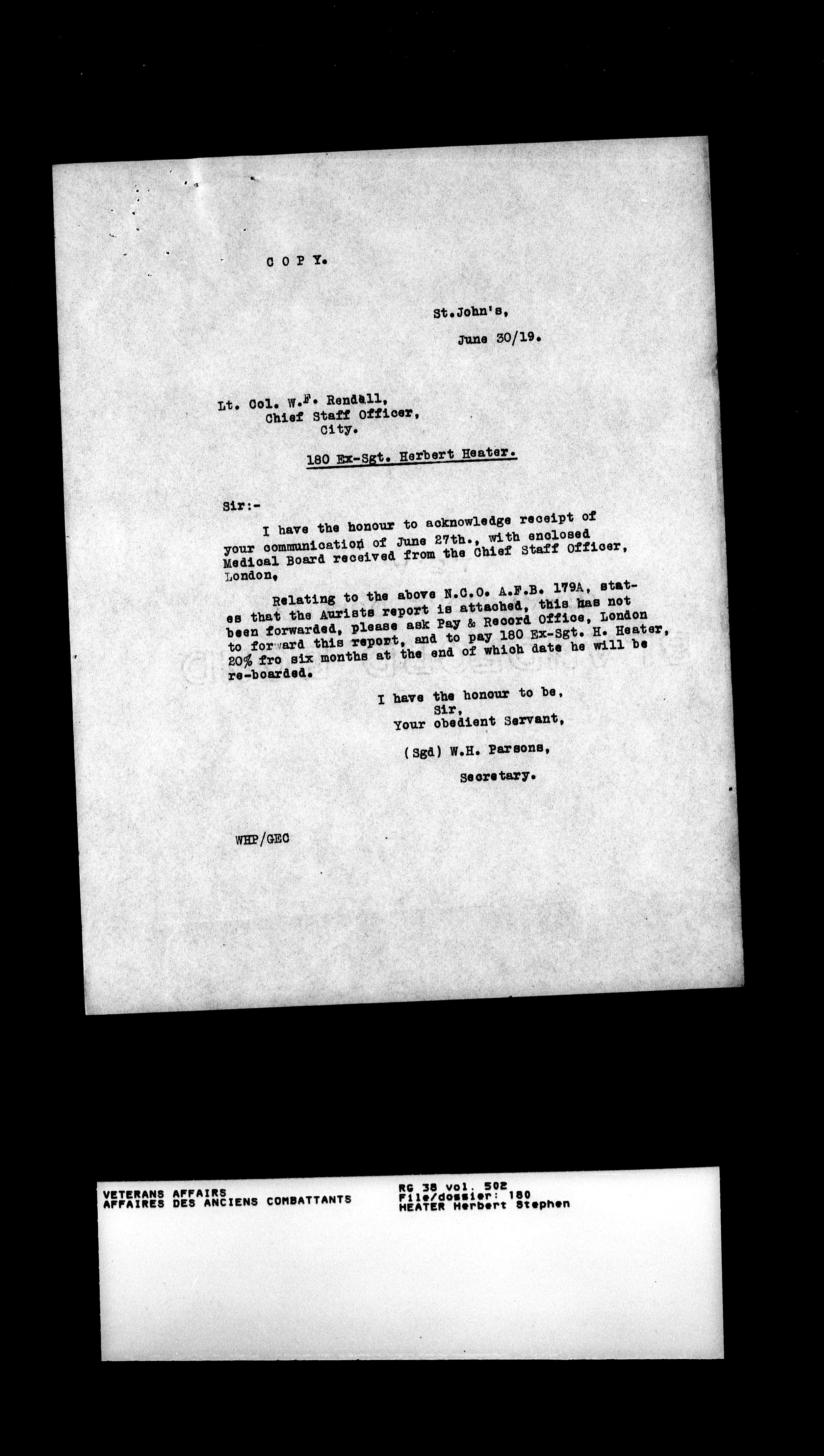 Military service files for members of the Royal Newfoundland Regiment and bandsmen and the Newfoundland Forestry Corps (1914-1919) - 18033