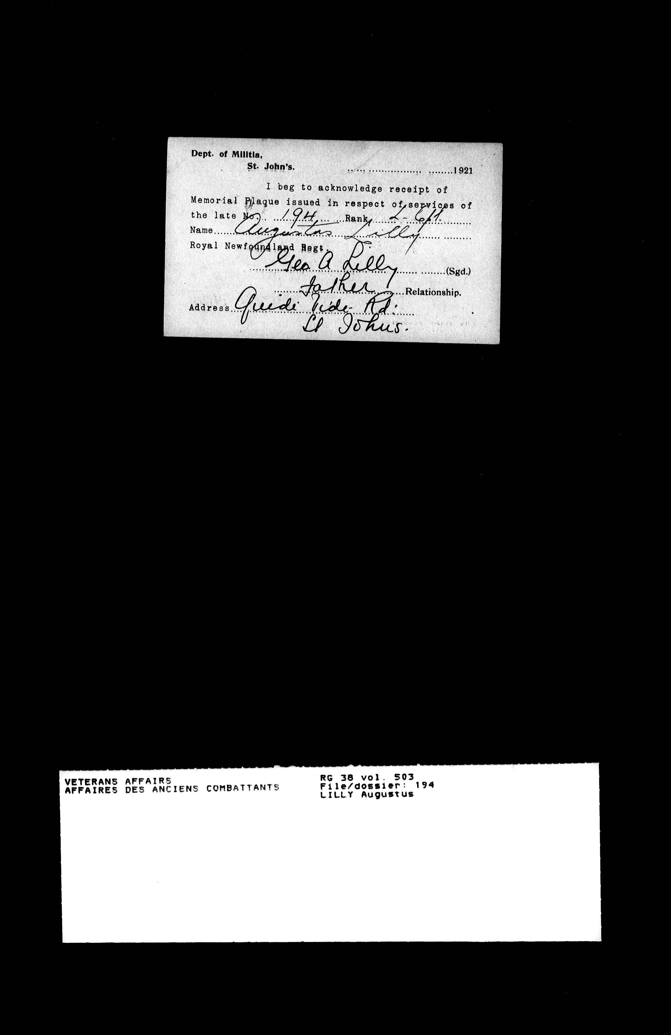 Military service files for members of the Royal Newfoundland Regiment and bandsmen and the Newfoundland Forestry Corps (1914-1919) - 18034
