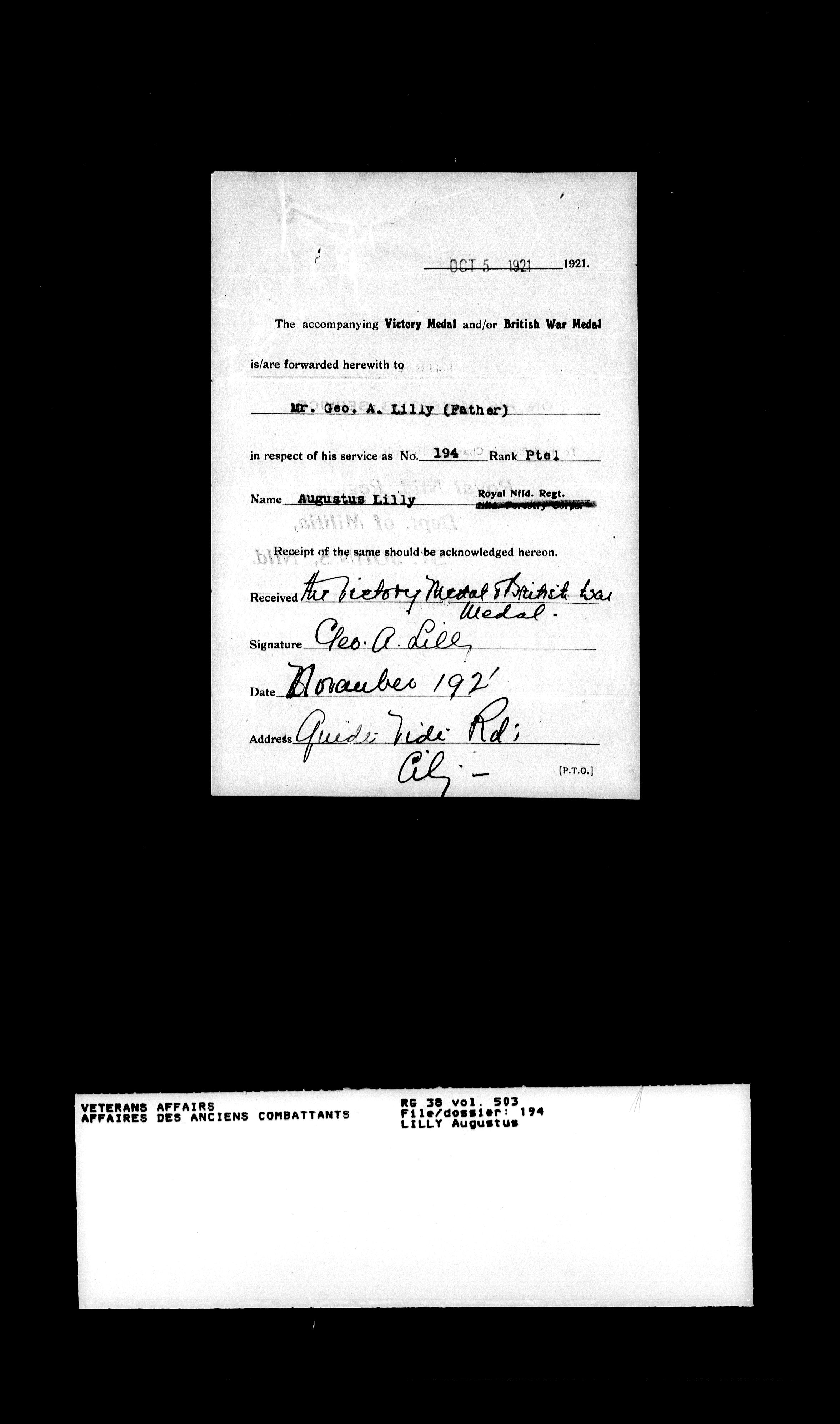 Military service files for members of the Royal Newfoundland Regiment and bandsmen and the Newfoundland Forestry Corps (1914-1919) - 18034