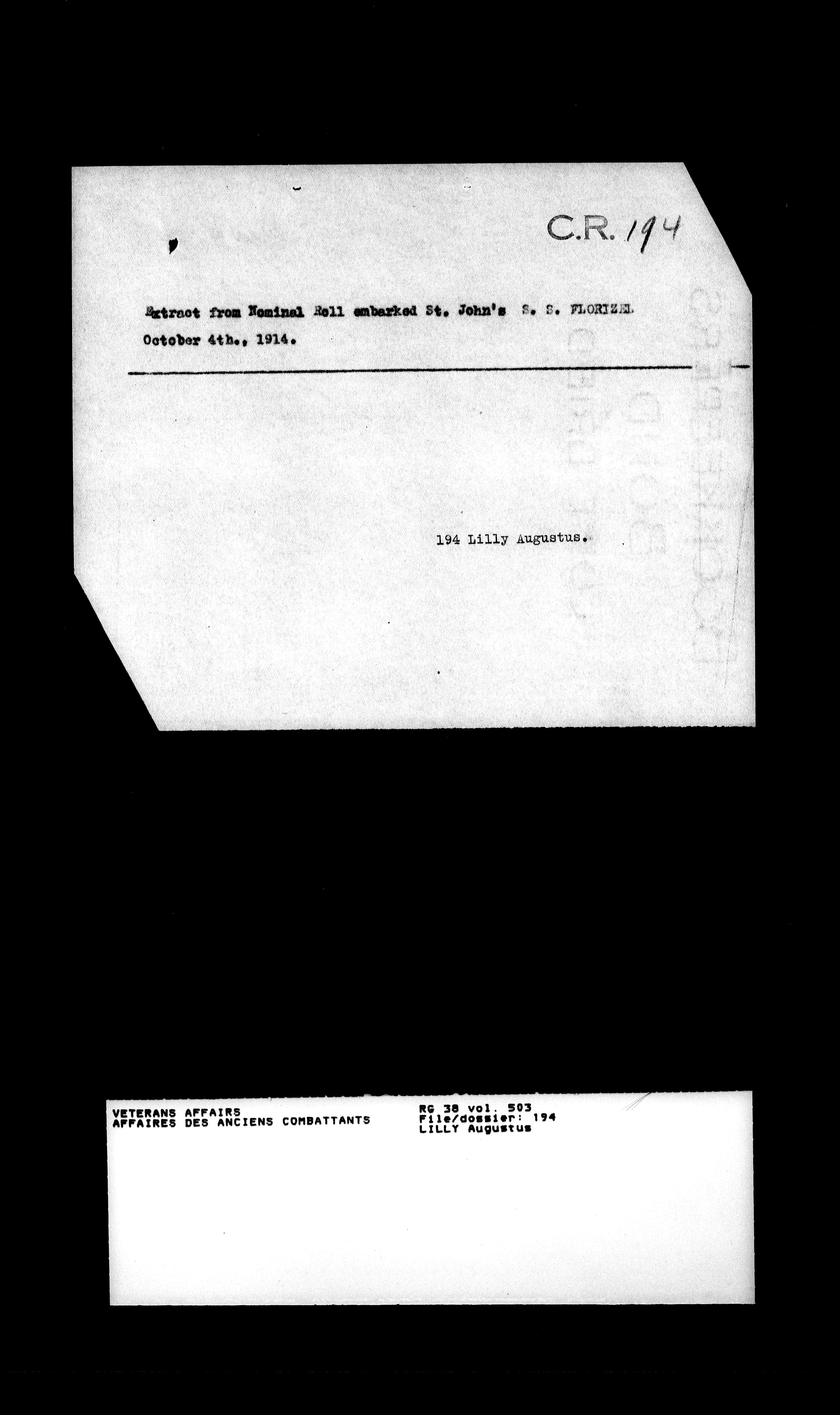 Military service files for members of the Royal Newfoundland Regiment and bandsmen and the Newfoundland Forestry Corps (1914-1919) - 18034