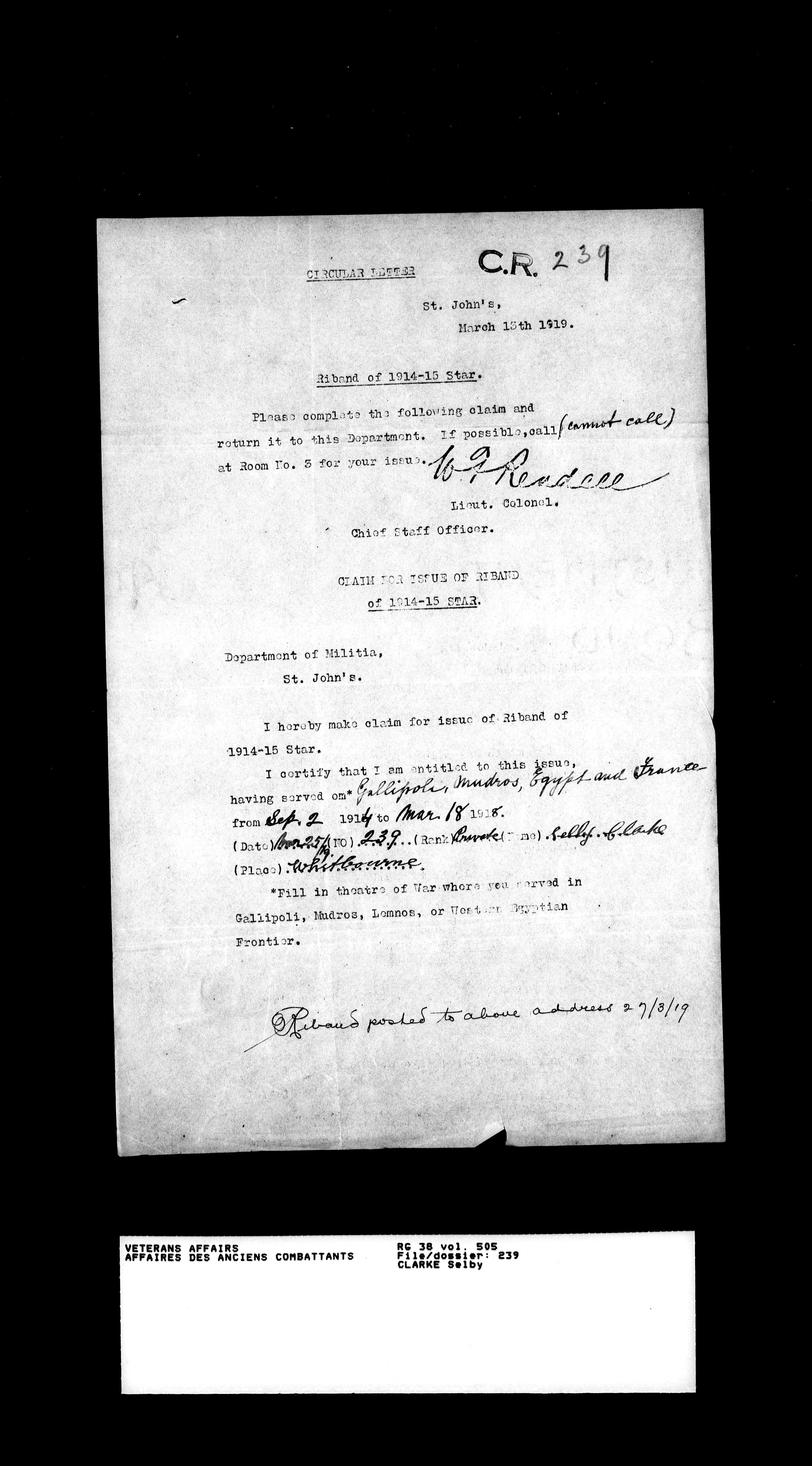 Military service files for members of the Royal Newfoundland Regiment and bandsmen and the Newfoundland Forestry Corps (1914-1919) - 18036